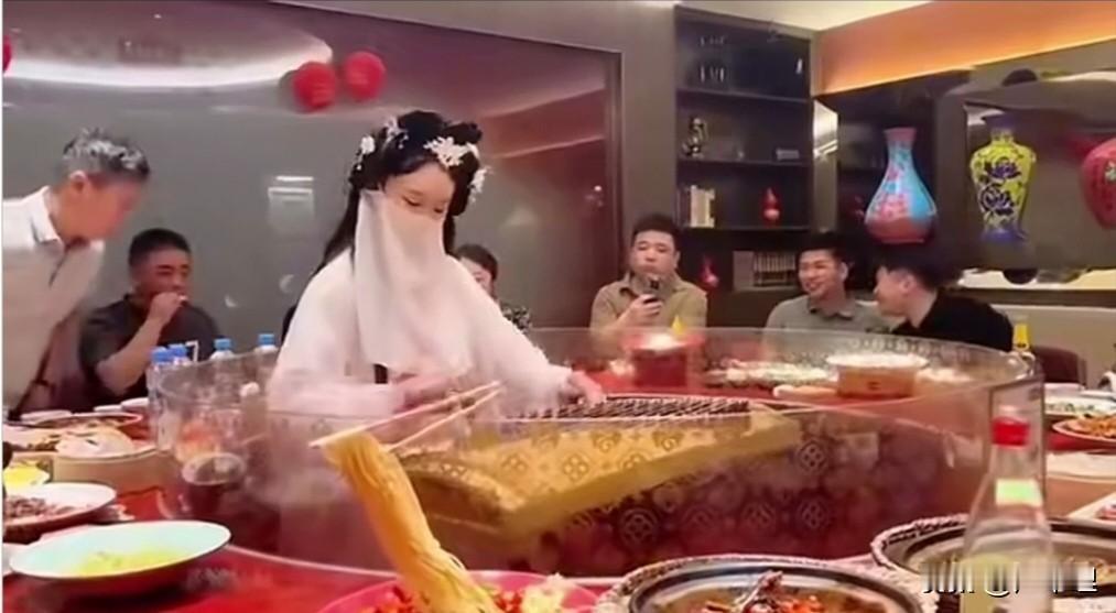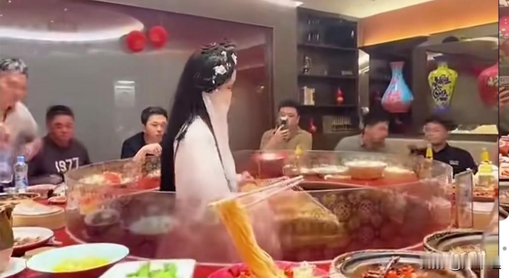 下图是近日南昌大饭店包房聚餐时的场景截图。本来,聚餐有音乐艺术相伴可以营造轻松氛围,这无可厚非。但像南昌大饭店这种全桌食客近距离把女艺人围在餐桌中央的这种摆放是有问题的。第一,食客是养了眼,但这种养眼一定与某种邪念共生。第二,女艺人围在餐桌中央狭小空间,一定会很压抑,很不自在,甚至有受辱的感觉,而且也不安全。第三,这种夸张的就餐样式传播出来,很容易让人产生“朱门酒肉臭,路有冻死骨”的联想。毕竟现在有好多年轻人还在找工作,谋温饱。