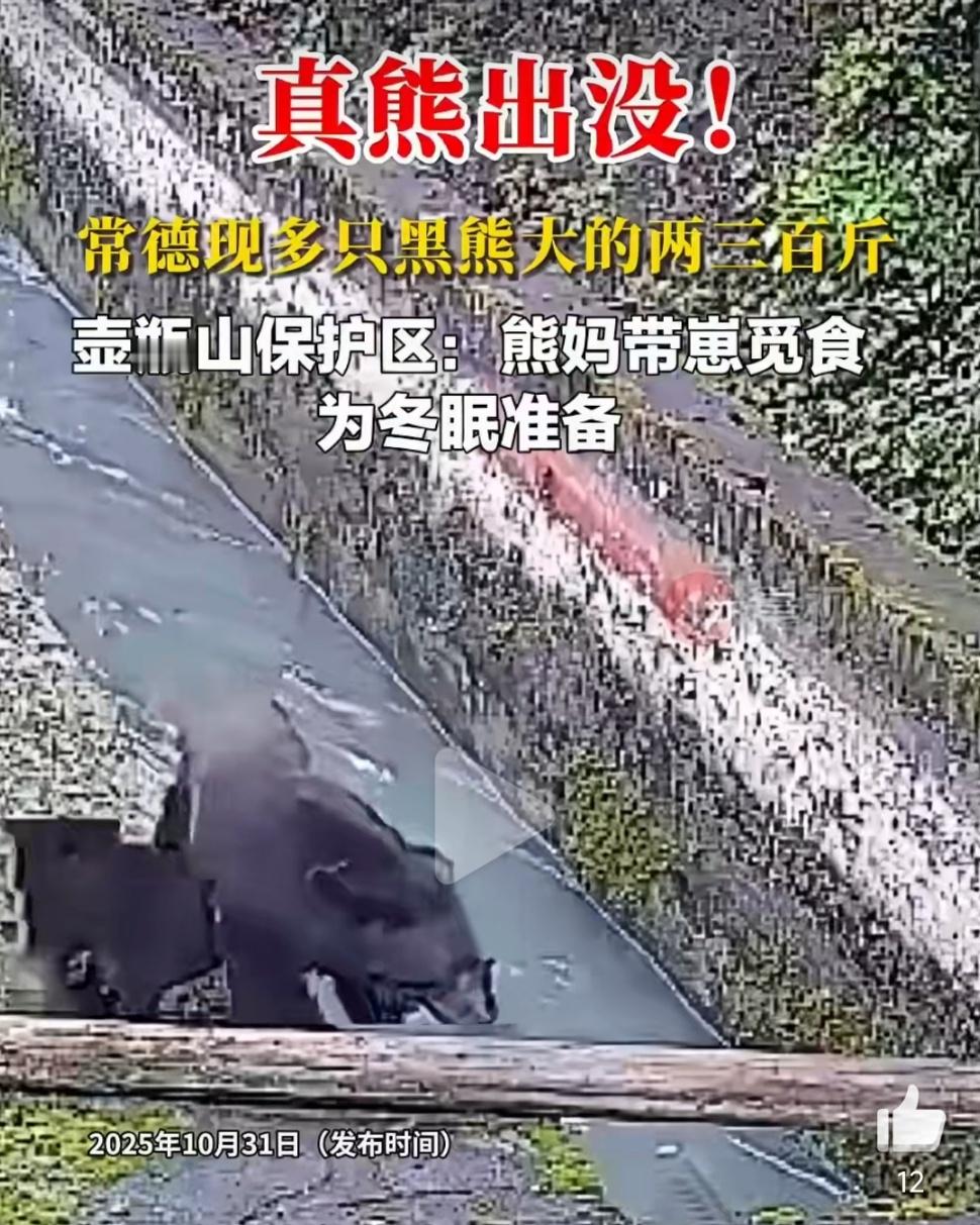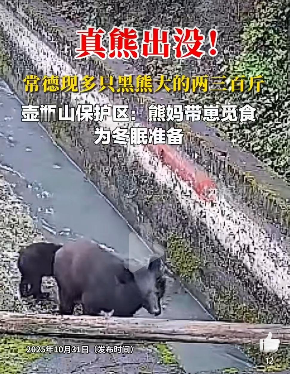 湖南常德现多只黑熊大的两三百斤黑熊下山觅食虽显温情,却暗藏人兽冲突风险。它们偷食蜂蜜、损毁作物时有发生,但当地未简单干预,而是用40万保险基金兜底损失,建立三级理赔体系 。更通过宣传引导村民“不投喂、不惊扰”,这种“保护+补偿+科普”的模式,既守护了野生动物,也保障了民生,诠释了人与自然共处的智慧。