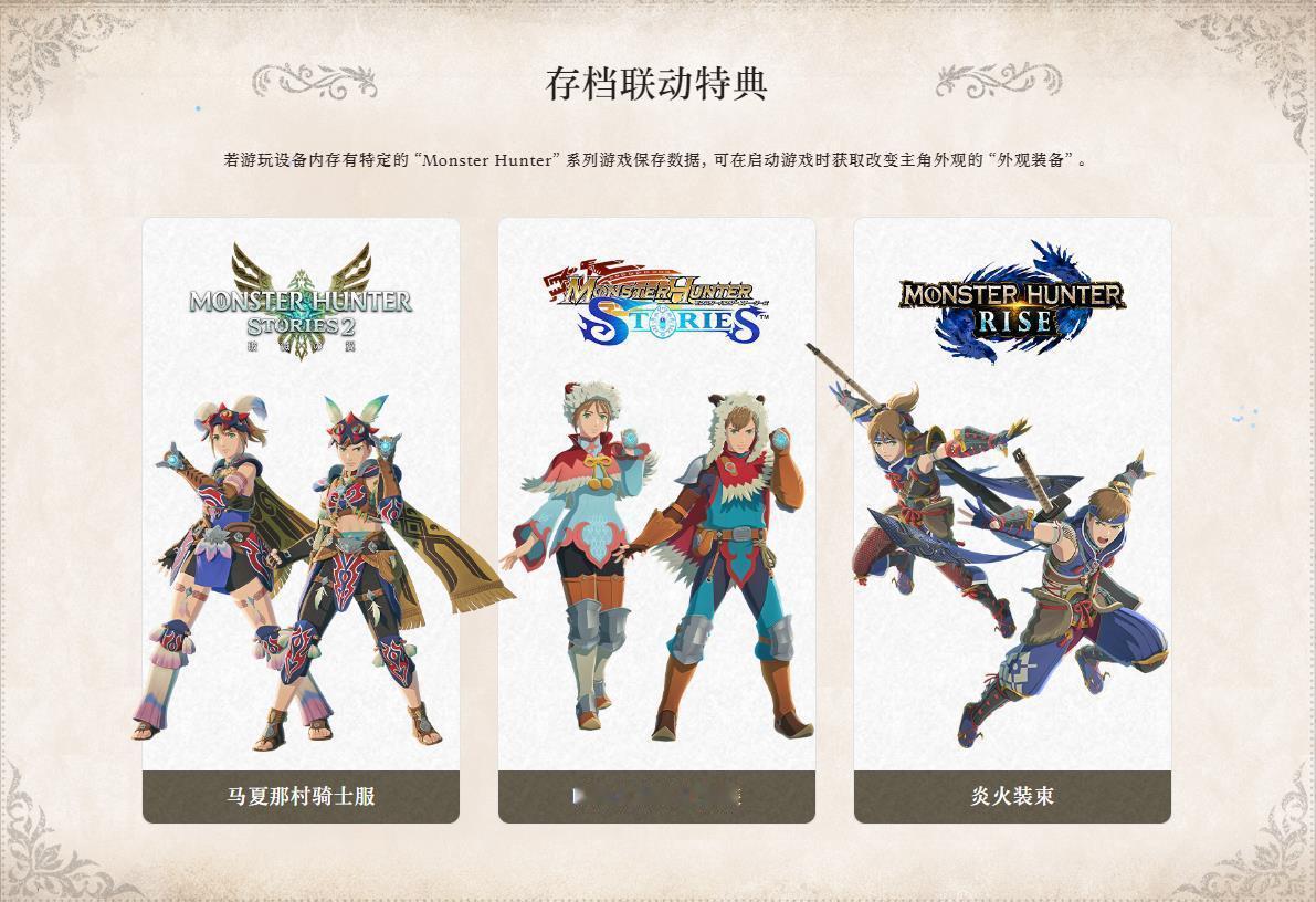 预约可获得限定特典——艾莲娜服装“苍鳞公主”。豪华版附赠支线故事“鲁迪篇”及特别换装组合,高级版在此基础上提供DLC礼包。玩家持有《怪猎》系列存档亦可解锁相关特典。