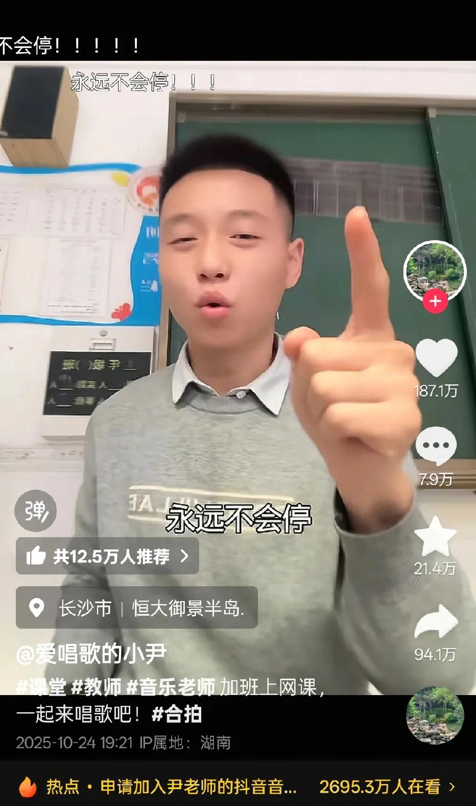 爱唱歌的小尹,最近在抖音太火了,那么多人跟他合拍视频,粉丝更是涨得很猛,只有我看的这一系列感到很尴尬吗?[震惊](无恶意,个人观点),感觉莫名其妙就火了起来,听第一遍无感,只感觉到他确实很激情饱满,但是有啥亮点啊?有什么价值输出? 这几天看到特别多的网红跟他合拍视频,甚至看到明星张艺兴也合拍了。。这个系列,越看越尴尬,不知道受欢迎的点在哪?大家刷过吗?(以上纯个人观点,理性看待)