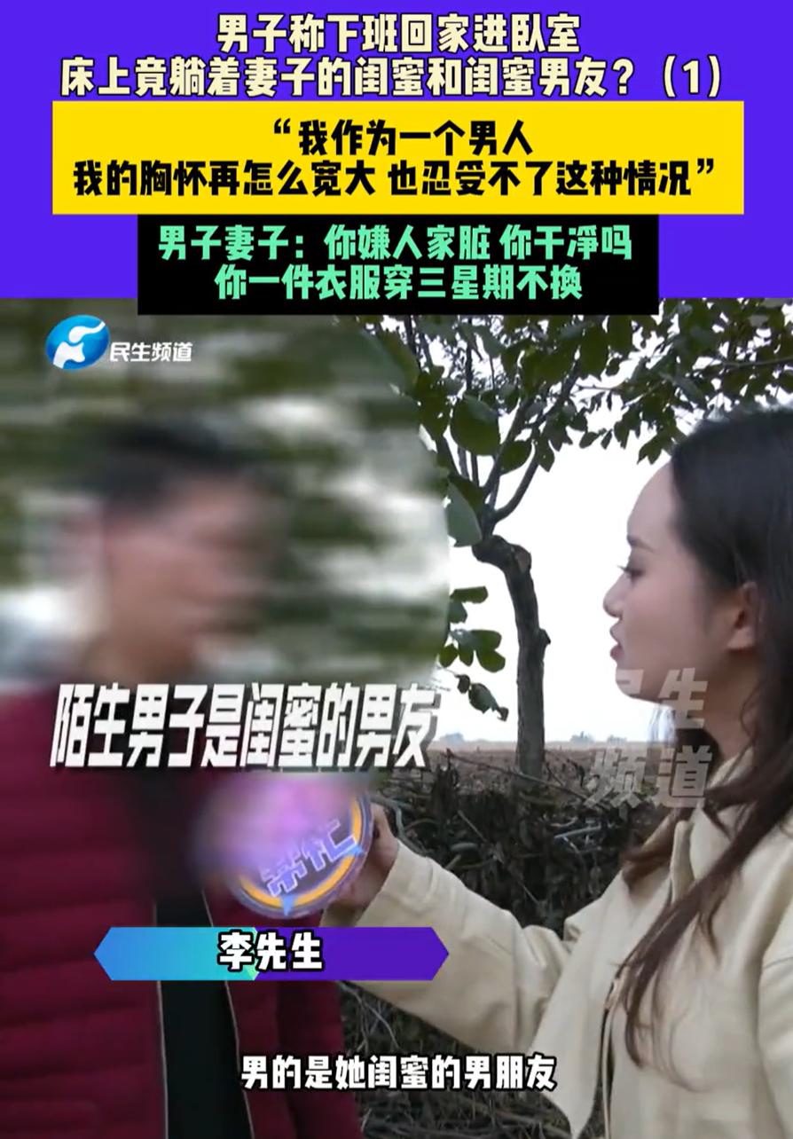 河南郑州,男子下班回到家,突然看到门口多出两双鞋子,正当他疑惑时,又发现卧室床上 躺着一对陌生男女,后来得知是妻子的闺蜜和其男友,虽然有一层关系在,但男子还是不能忍受别人躺在他的床上,可妻子却反怼道:你一件衣服穿三个星期,你还嫌人家脏? 李先生介绍,当天下班回到家,媳妇正在厨房做饭,自己比较累就想回卧室休息一下,可一进屋,却发现有一个男的躺在他的床上,对着他打招呼说“hello”,旁边还有一名女子盖着被躺在被窝里 在他看来,作为一个男人,就算自己的胸怀再怎么大,也忍受不了这种情况,于是直接来到厨房询问妻子,本以为妻子能站在她这一边,结果妻子让他别声张,怕闺蜜听见。更让他难以接受的是,家里明明有客房,为什么非要让外人睡主卧? 面对丈夫的不满,妻子解释称闺蜜男友只是坐在床边靠着床头,并没有真的躺下。她还提起李先生一件衣服穿三周的事,反问这样还嫌别人脏? 这件事成了导火索,夫妻俩积压的矛盾全都爆发出来。李先生觉得妻子做事欠考虑,还总半夜出去喝酒。妻子则抱怨丈夫不顾家,里里外外都是自己操持,甚至还找到了媒体调解 其实,能看出这事的核心不是那一张床,而是彼此之间那点已经模糊的界限。一个觉得被不尊重,一个觉得被不理解,这种情绪一旦积压,就容易因为一件小事炸出来 很多婚姻里的问题都是这样,不是因为谁错得离谱,而是生活太久之后,彼此都在用自己的标准去定义对方。一个觉得“这点小事何必计较”,另一个却觉得“这不是小事,这是态度”。两种思维都没错,只是没人愿意先退一步 我觉得,家是最私密的地方,卧室尤其如此。无论感情多好、关系多近,跨过了那条线,就不再只是客气问题,至少在这个事上,妻子做的确实不对