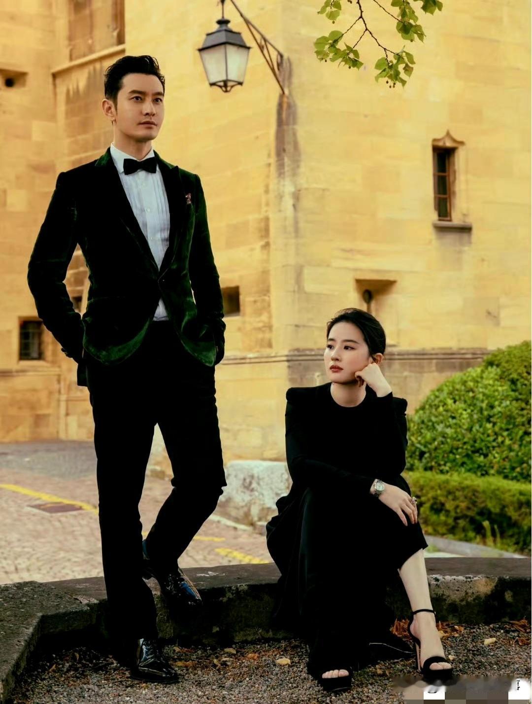 黄晓明刘亦菲古堡大片氛围感拉满:黑西装适配度绝了 黄晓明与刘亦菲的古堡同框大片,直接把“优雅贵气”焊在镜头里。他穿墨绿丝绒西装,自带复古绅士气场;她着黑色修身长裙,冷艳又松弛。 古堡石墙、湖景城廓作背景,两人或并肩倚栏、或侧坐低语,每帧都像欧式电影截图。黑调穿搭衬着暖调光影,既酷又高级,这组同框属实是颜值与气质的双重暴击。