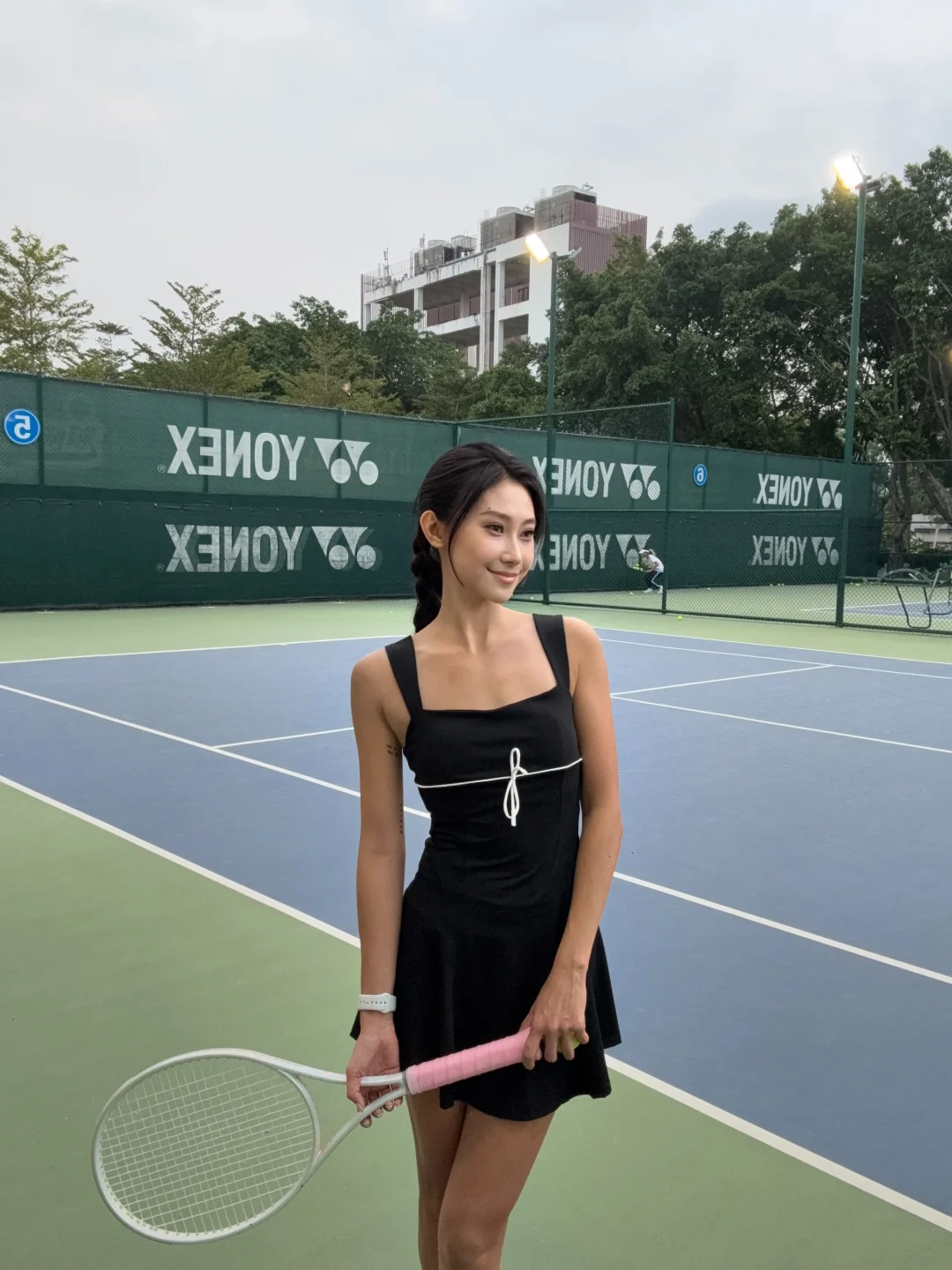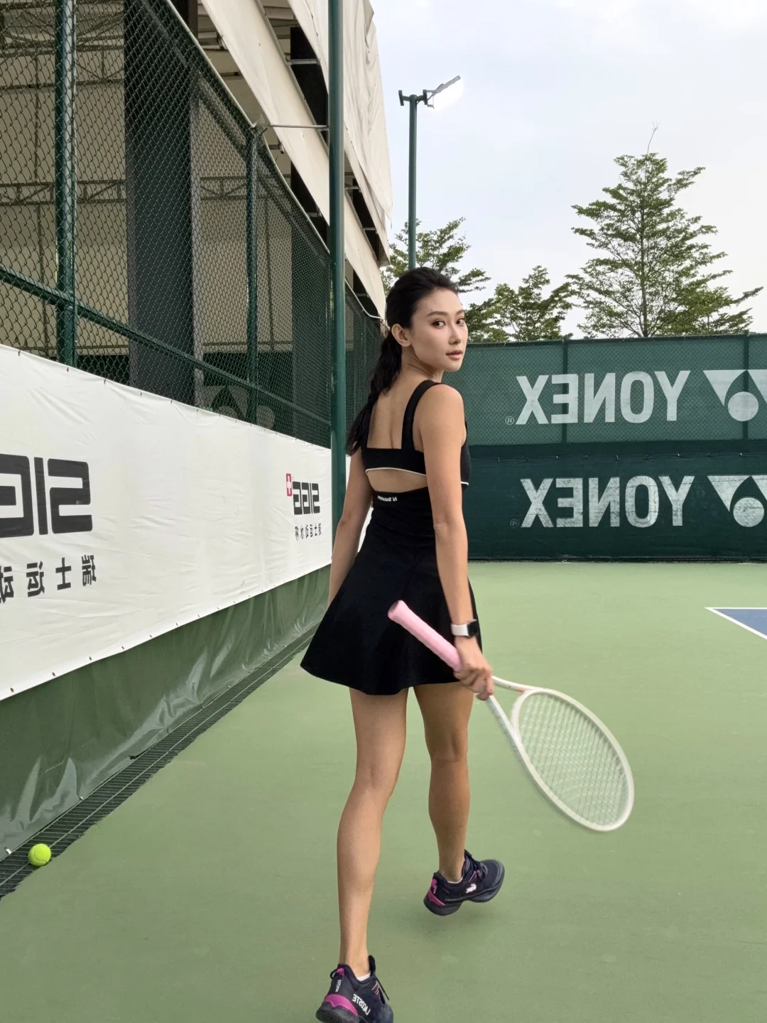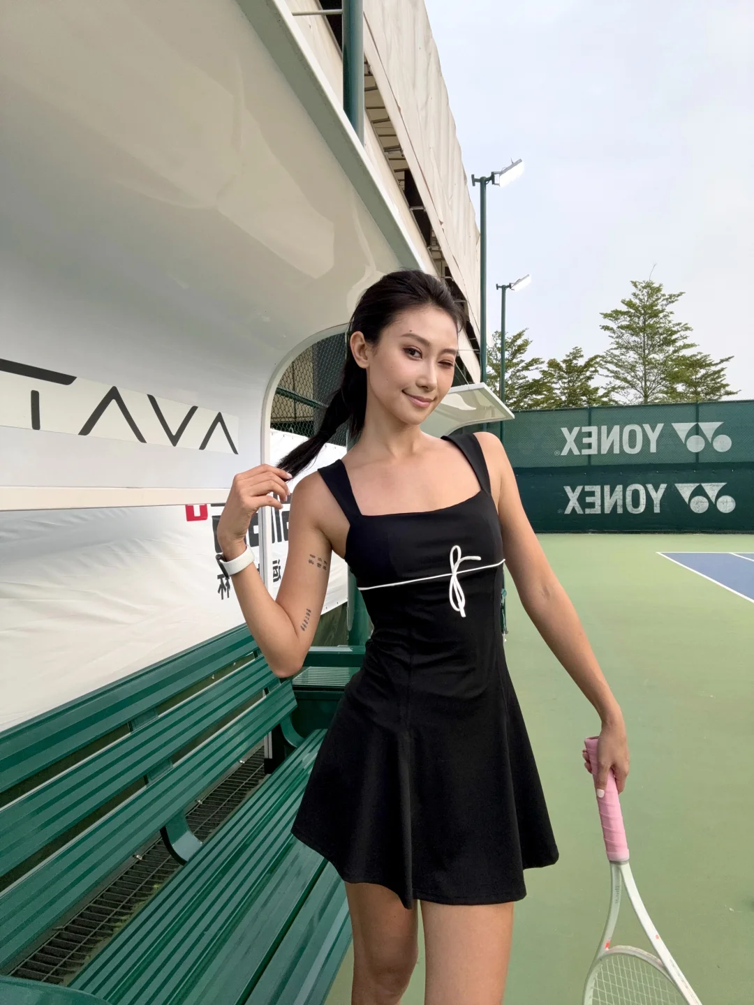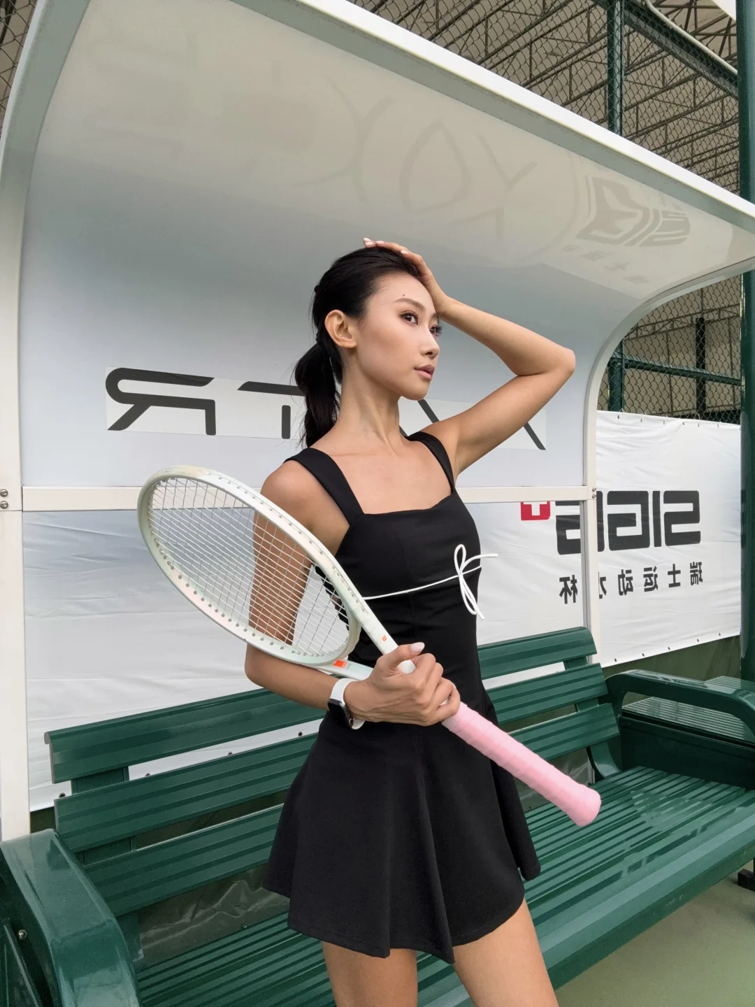 网球 网球尖子生 气质小黑裙 城市网球风 网球穿搭