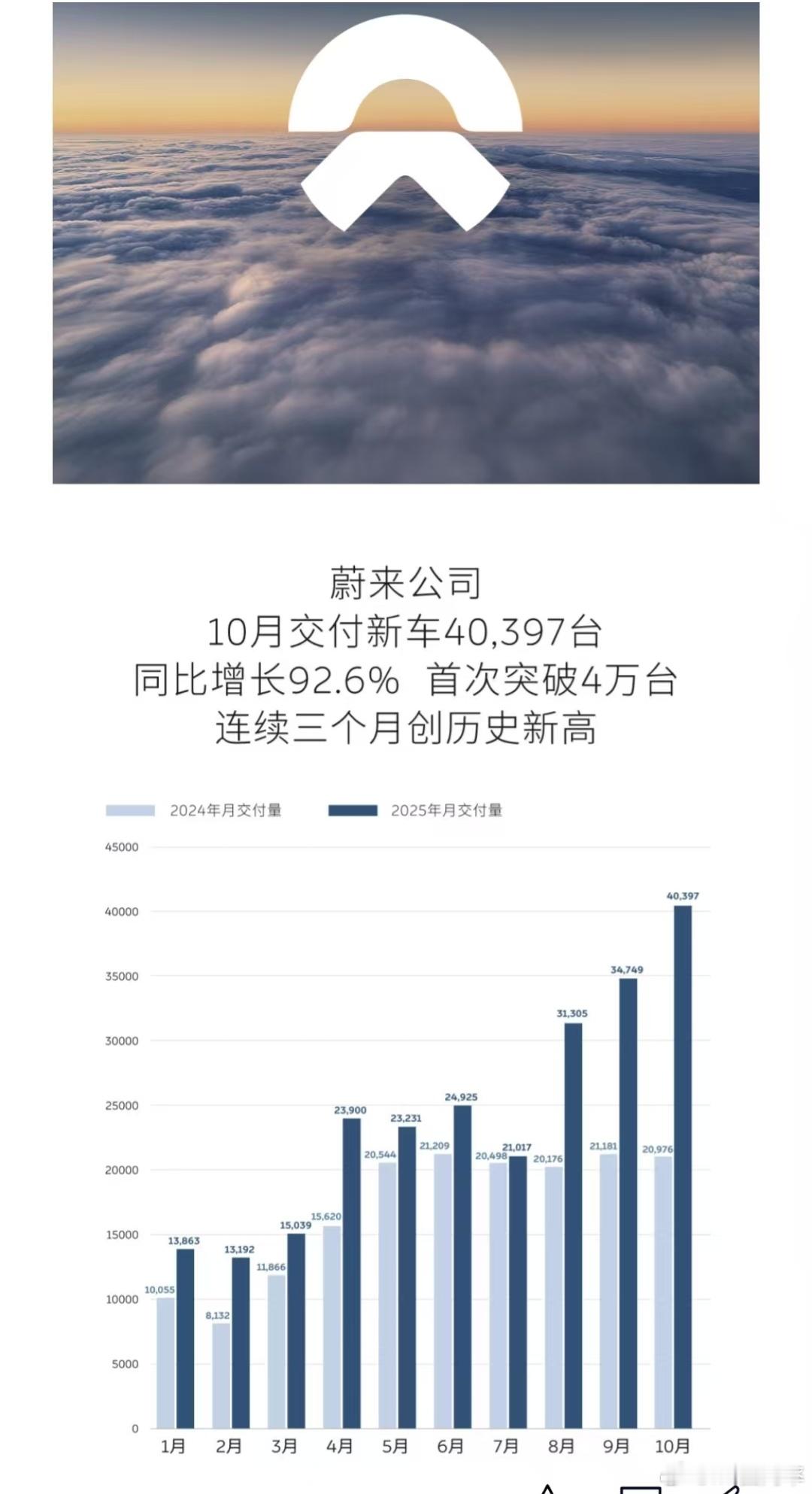 比9月多了快6000台,🐮哇,恭喜蔚来销量节节高升
