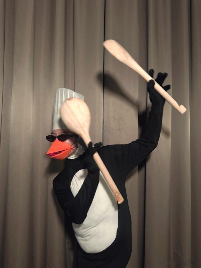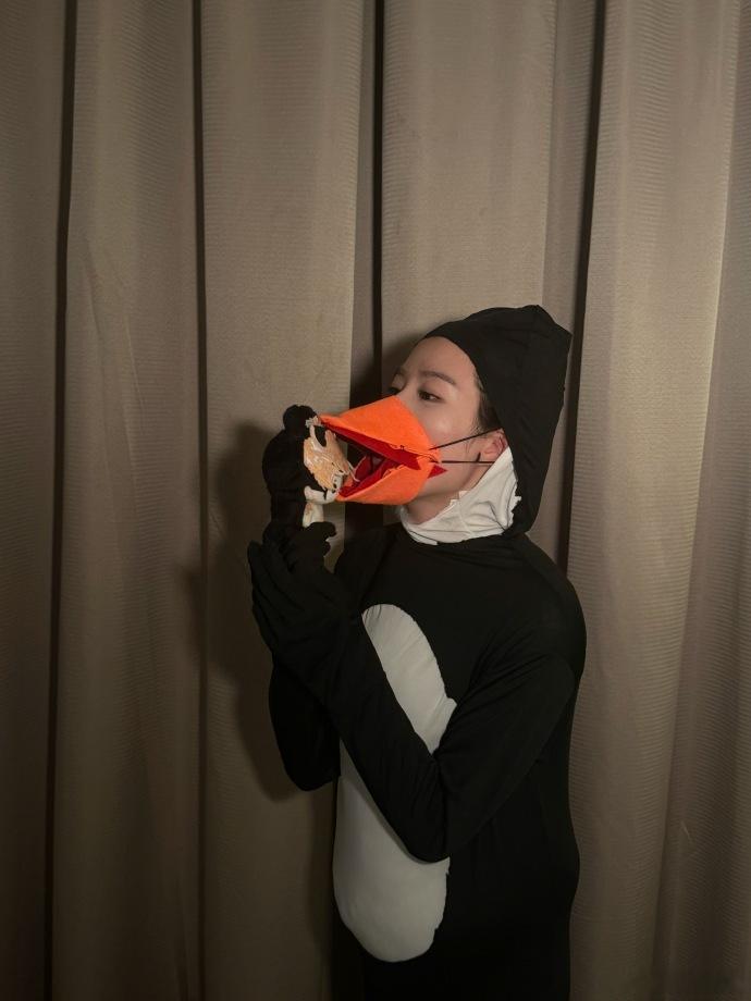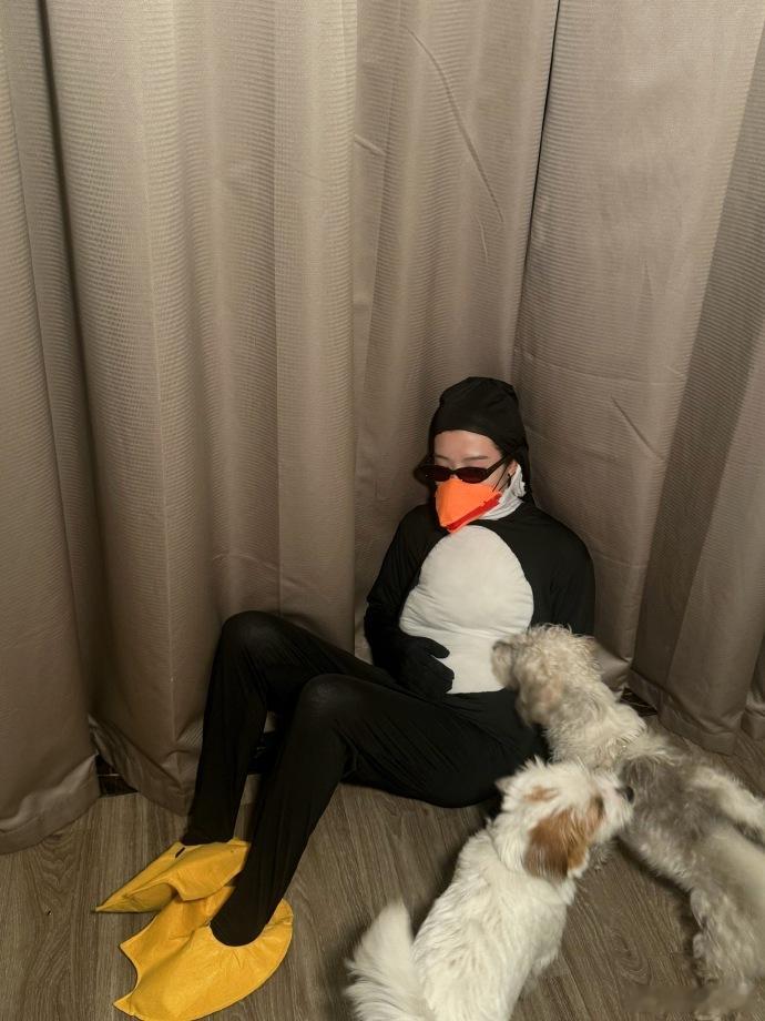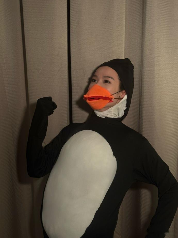 提及卢昱晓的万圣节动态,高雅企鹅cos很有特色,避开节日里常见的夸张风格,这