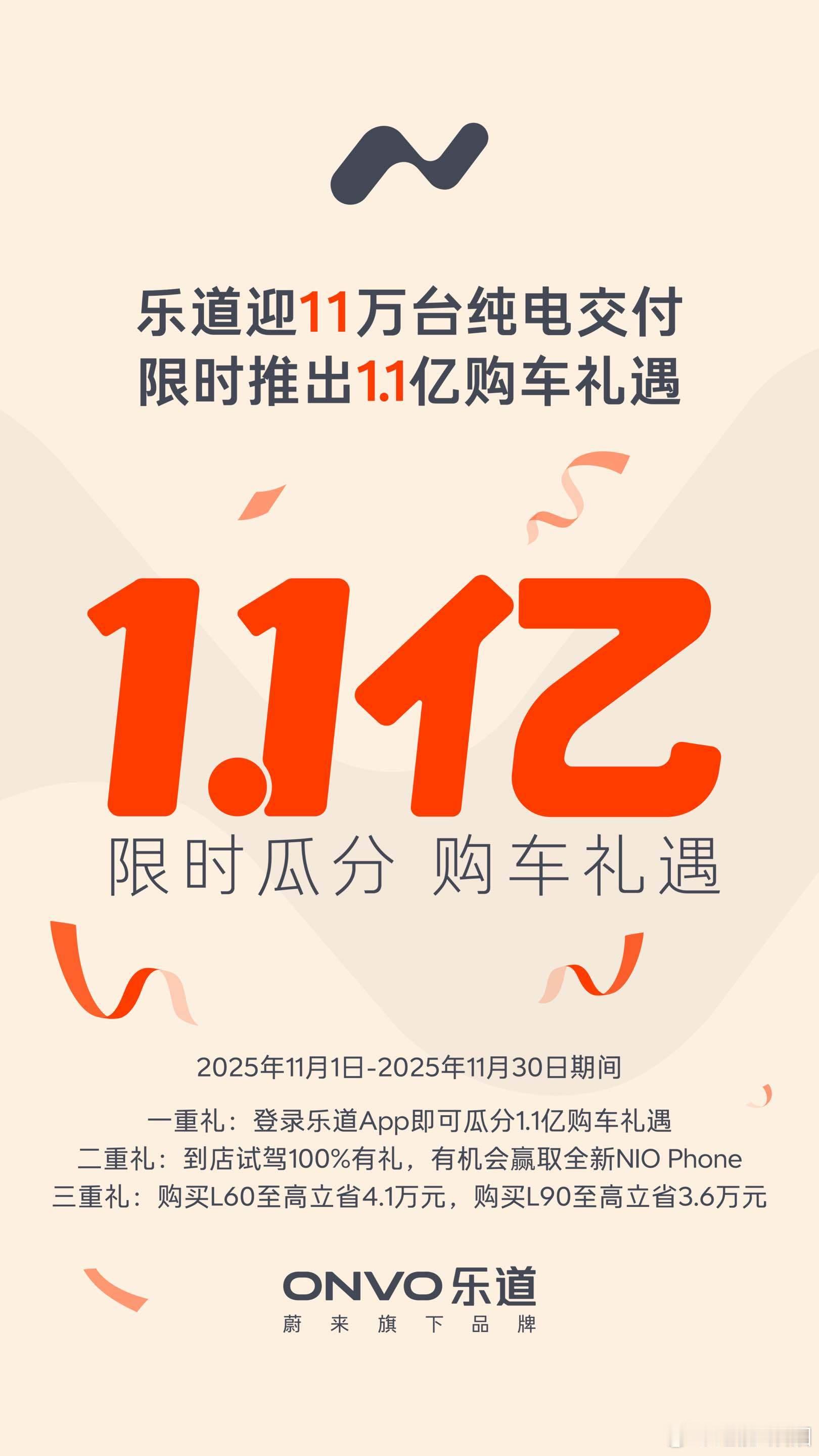主力车型乐道L90上市三个月,累计交付33,348台,蔚来的多品牌战略能否跑通,乐道已经给出了最清晰的答案。乐道还将迎来11万台交付里程碑,并推出1.1亿元限时购车补贴。