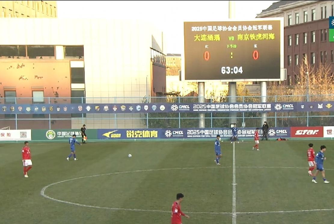 客场0:0战平大连涵瑀,南京铁虎河海中冠交叉排位赛占得先机 中冠总决赛交叉排位赛第二轮第一回合,南京铁虎河海客场对阵大连涵瑀,本场比赛,渠成、袁征、苗明、恰格次力、屈子杰、朱磊、于上、冉耘赫等主力球员以及上场对阵深圳吉祥打入准绝杀进球的杨睿首发出战,祝晖替补席待命,滕帅、唐淼继续缺席。 上半场,双方攻防节奏快,拼抢激烈,但都没有获得太好的射门良机,铁虎河海依靠杨睿的任意球威胁了对手大门。 下半场,通过人员调整,铁虎河海逐步占据场上主动。 第54分钟,铁虎河海贾共琛中场位置一记极具想象力的吊门,惊出对手门将一身冷汗。 第60分钟,南京铁虎河海冉耘赫超远距离射门,稍稍偏出。 第74分钟,铁虎河海边路传中击中门柱。 第93分钟,杨睿任意球射门偏出。 最后时刻,屈子杰扑出了大连涵瑀两次有威胁的射门。 0:0比分保持到了终场,本场战平,由于小组赛成绩占优,铁虎河海占得先机,回到主场只要战平,即可晋级。