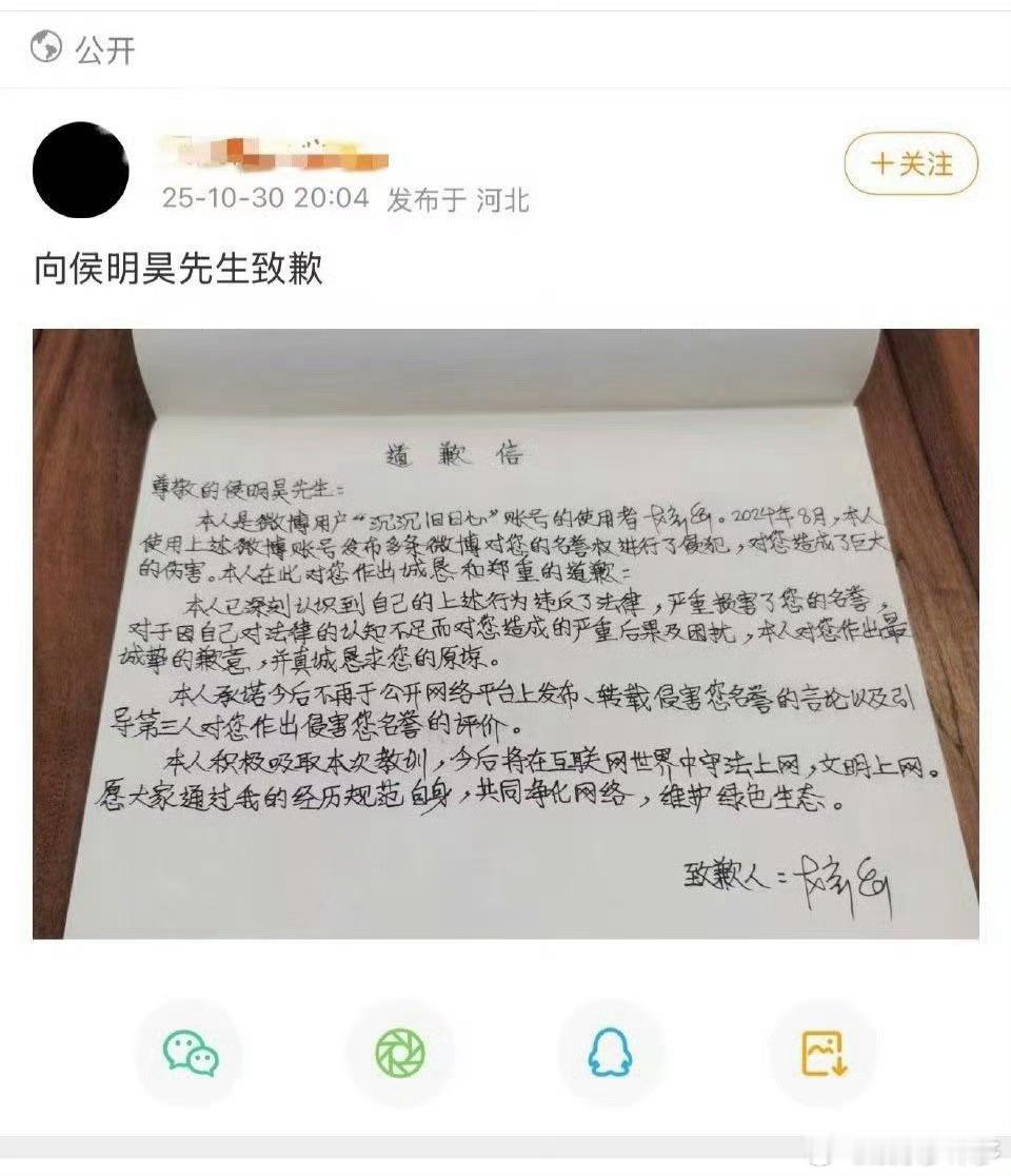 侯明昊告黑胜诉侯明昊黑粉手写道歉信侯明昊告黑有结果了!黑粉发实名手写道歉信,他