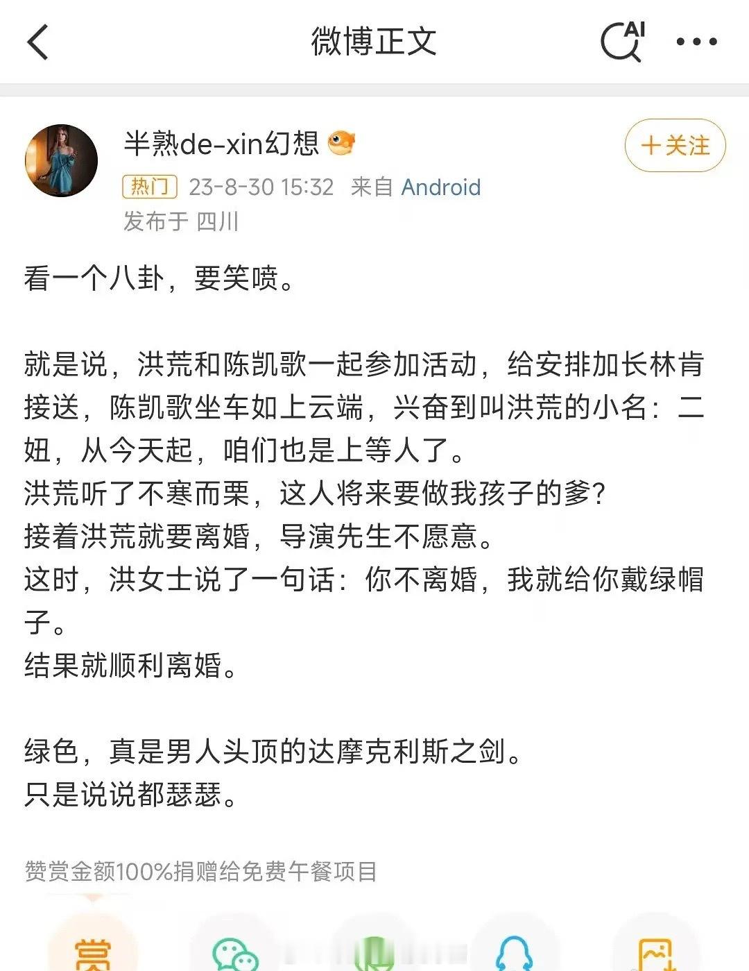真的假的?洪晃和陈凯歌离婚理由是这么无厘头嚒……这也太离谱了吧😂