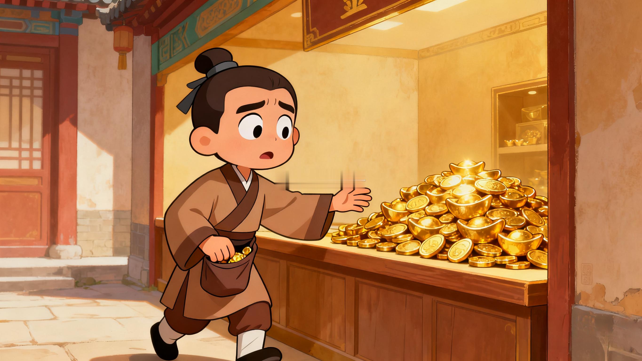 讲一个故事:古时候有个人,总想着发大财,一天到晚脑子里想的都是拥有很多黄金。有一天,他路过一家金铺,看见柜台上摆了很多黄金,他的眼睛一直盯着那一堆黄金,不由自主得就走过去了,伸手便把黄金往自己的口袋里装。