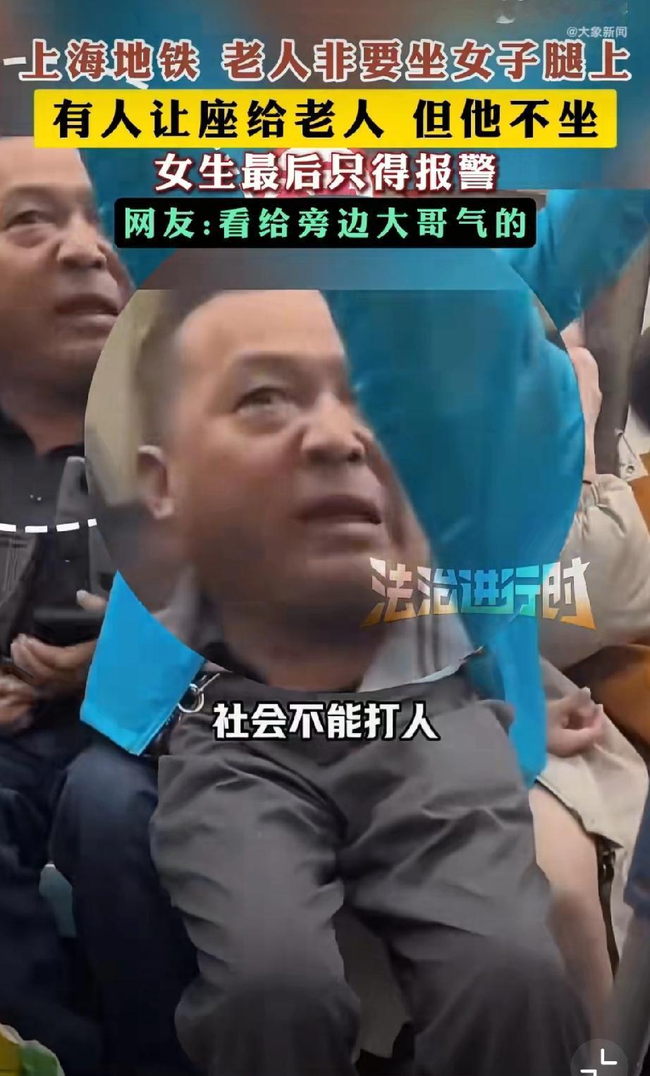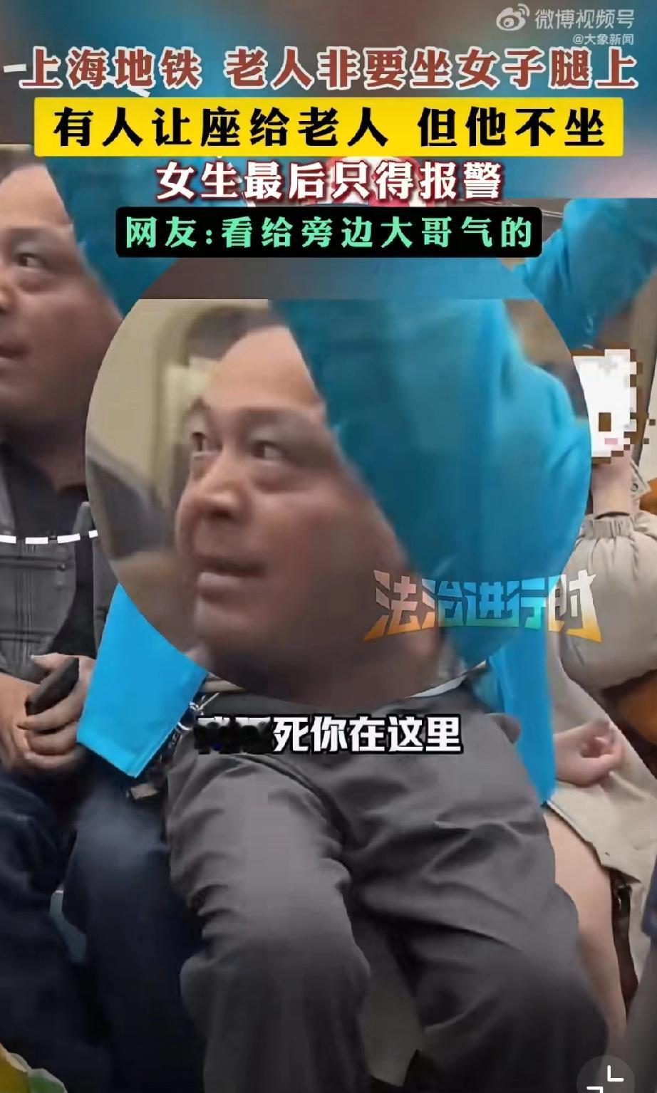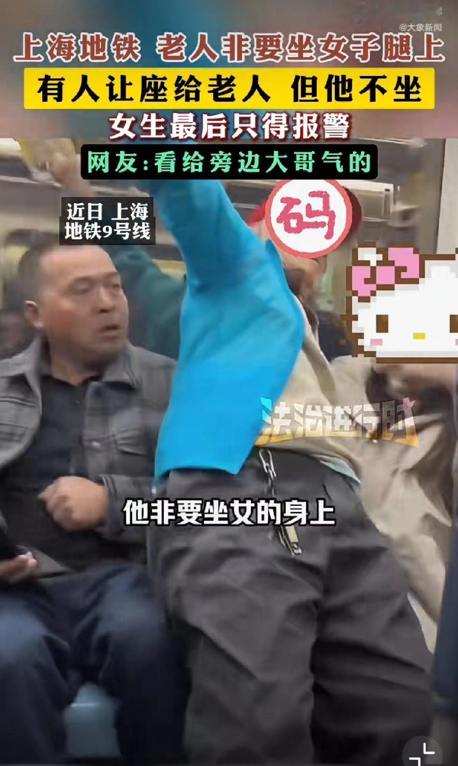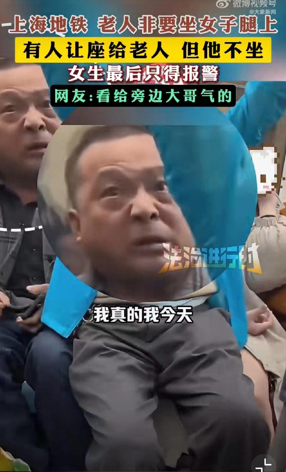 为老不尊!上海地铁上一老人座位不坐,强行要坐在女子腿上,女子无奈选择报警!网友:网友警察别和稀泥,不要惯着老无赖[发怒]!大爷地铁让座 地铁上奇葩行为 地铁老人