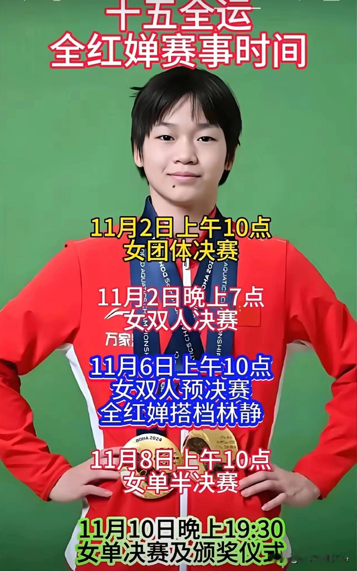 号外!号外! 全红婵十五全运复出大战明天打响! 11月2日,休息了快半年的跳水天才全红婵,会在十五全运会赛场正式出场, 上午参加女子团体10米跳台决赛, 而且晚上还要参加女子双人10米跳台决赛,这场王者归来的比赛不仅是她打破最近状态下滑、发福等谣言的最好证明,另外还会向着全运会三金王甚至跳水史首个五金王发起有力冲击! 作为中国跳水的热门选手,全红婵从2025年5月世界杯后就没参加过比赛,近半年来关于她状态的猜测一直没停,不过最新消息显示, 这位16岁小将已经完全恢复到最好水平,身材回到适合比赛的状态,学会了5255B这样的高难度动作, 队内测试赛还拿到了7个满分,标志性的水花消失技术威力没变,只要拿出这样的实力,就足够回应所有质疑! 明天的比赛安排可以说很紧张:上午参加女子团体10米跳台决赛,作为广东队的核心选手, 她会凭着74%的夺冠概率帮助球队争取卫冕;晚上参加女子双人10米跳台决赛,和广东队16岁小将蒋林静的新组合虽然配合很好, 不过面对陈芋汐和掌敏洁的国家队搭档,55%-80%的夺冠概率还有不确定因素。而真正的精彩比赛会在11月10日进行,全红婵会和陈芋汐展开竞争, 在女子单人10米跳台项目中凭着61%的夺冠概率争夺金牌,两人19次比赛陈芋汐赢了13次的差距,所以可能会在主场优势的帮助下改变! 总的来说,全红婵这次参加三个项目的比赛,总体夺冠概率高达70%-80%, 不过拿到三块金牌的概率大概是40%-50%。 团体赛的第一场胜利会打下好的士气基础,双人赛新组合的配合是重要考验,单人赛是对她克服身体发育挑战、适应比赛节奏的最终检验, 所以这次全运会是她伤好复出后的第一次正式出场,不管最后成绩怎么样,从伤病中恢复、突破身体发育困难的坚持,早就让她超过了比赛输赢本身的意义! 明天上午,广州广东奥体中心会见证水花消失技术的回归!不能到现场的粉丝可以锁定央视体育或者网络直播,一起为全红婵加油!另外,这场复出比赛,一定会点燃中国跳水的精彩时刻! 其实,赛场竞争不只是技术和状态的比拼,更是对心态和抗压能力的挑战,在这个过程中,全红婵的每一次起跳,都会是对自己的突破,也让观众看到年轻运动员的坚强和成长。 大家对这件事怎么看呢?欢迎在评论区留言讨论吧! 跳水冠军婵 全红婵世锦赛 全红婵写真