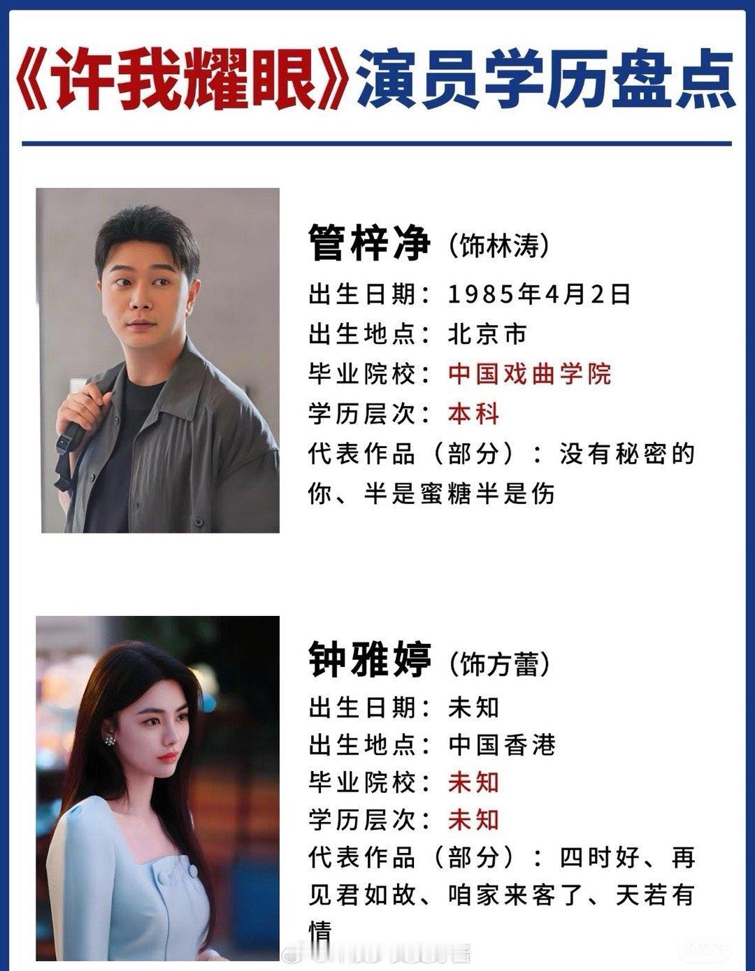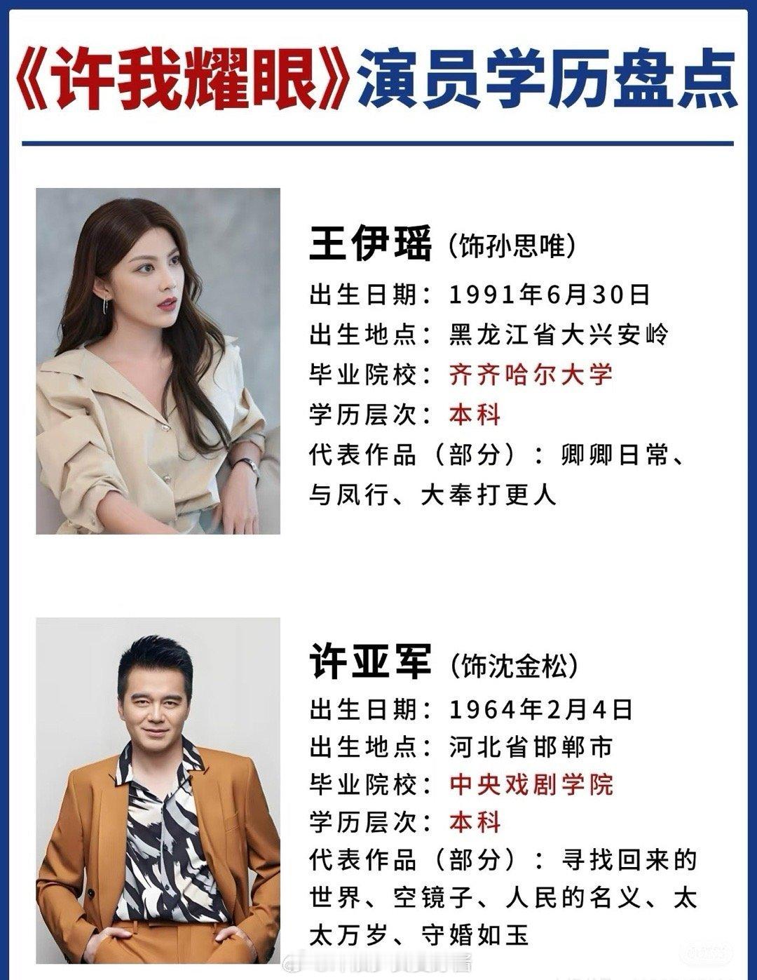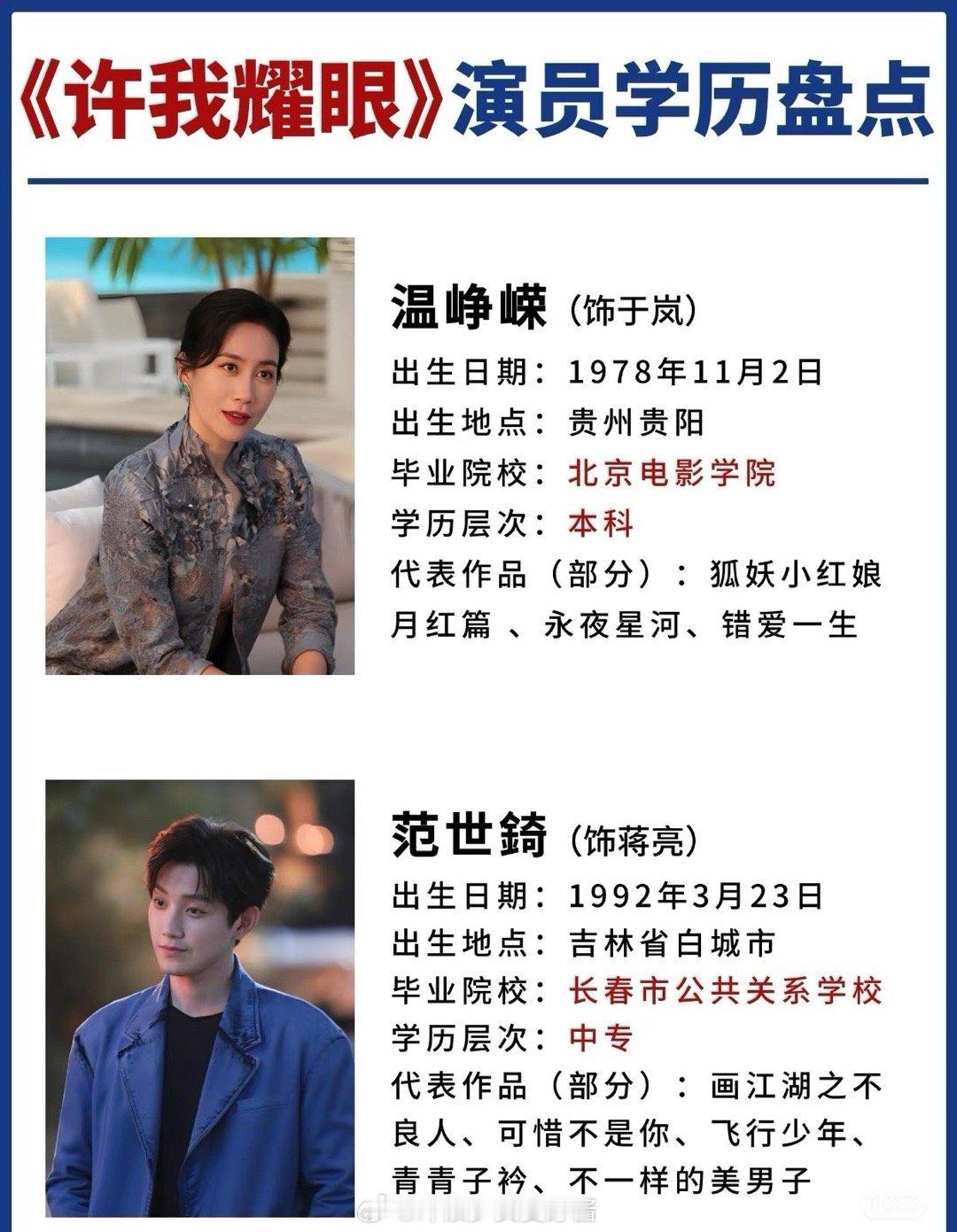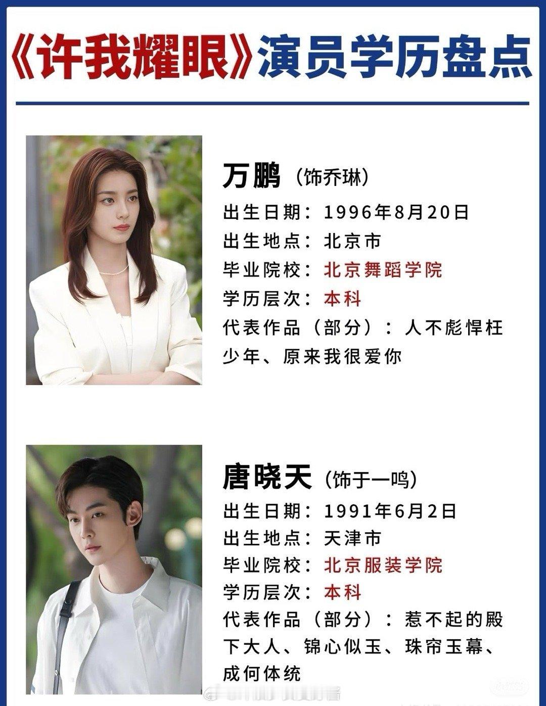 《许我耀眼》演员学历大盘点