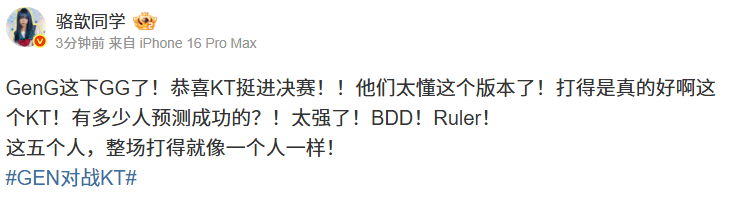 GenG这下GG了!恭喜KT挺进决赛!!他们太懂这个版本了!打得是真的好啊这个KT!有多少人预测成功的?!太强了!BDD!Ruler!