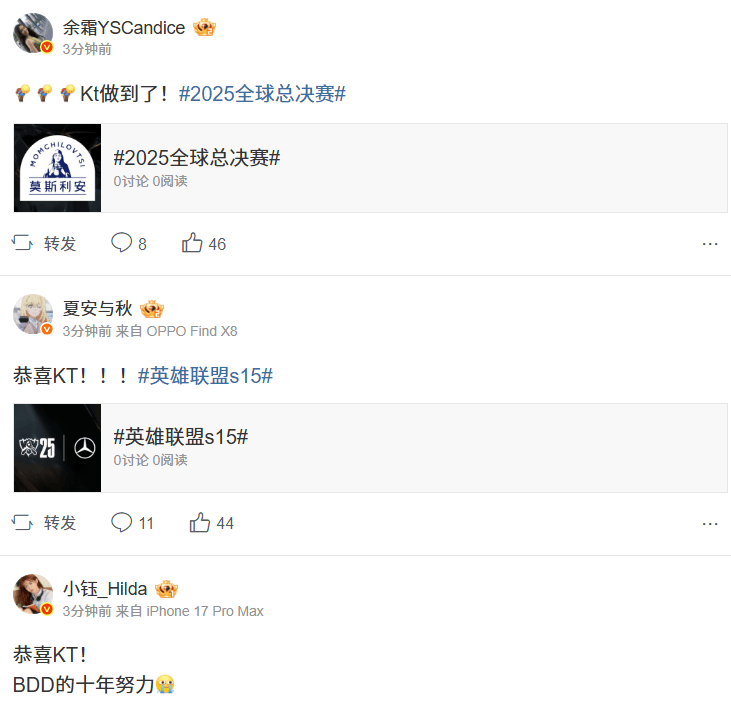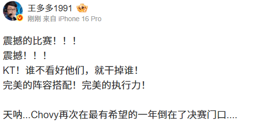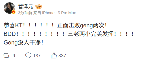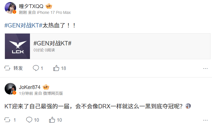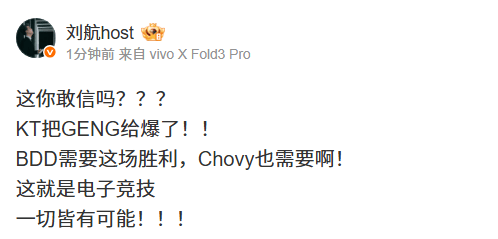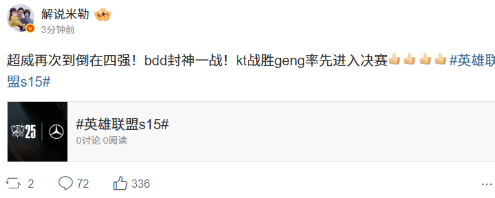 虎扑11月01日讯S15淘汰赛,KT3-1GEN,晋级决赛。LPL解说&主持发文热议。