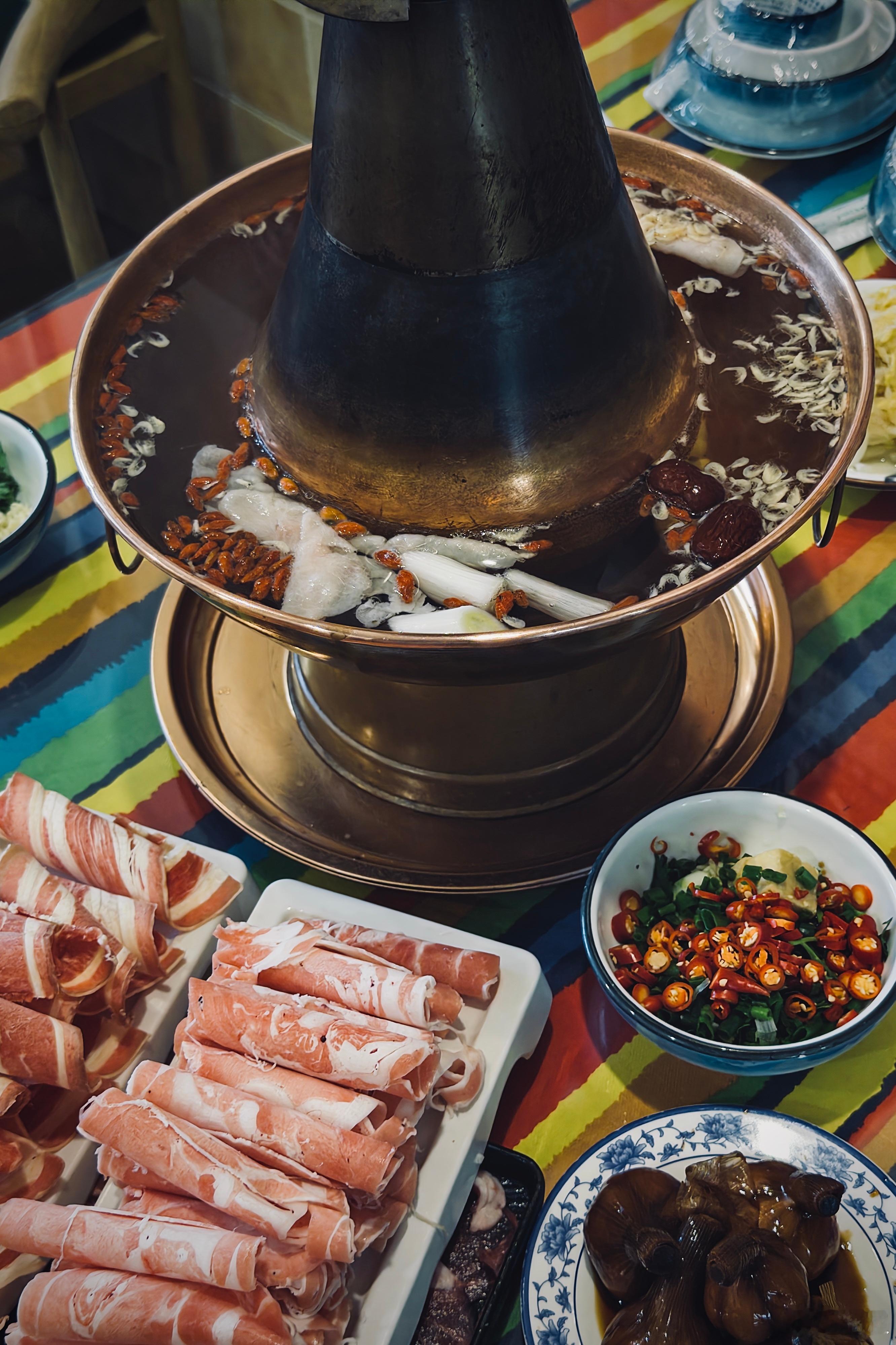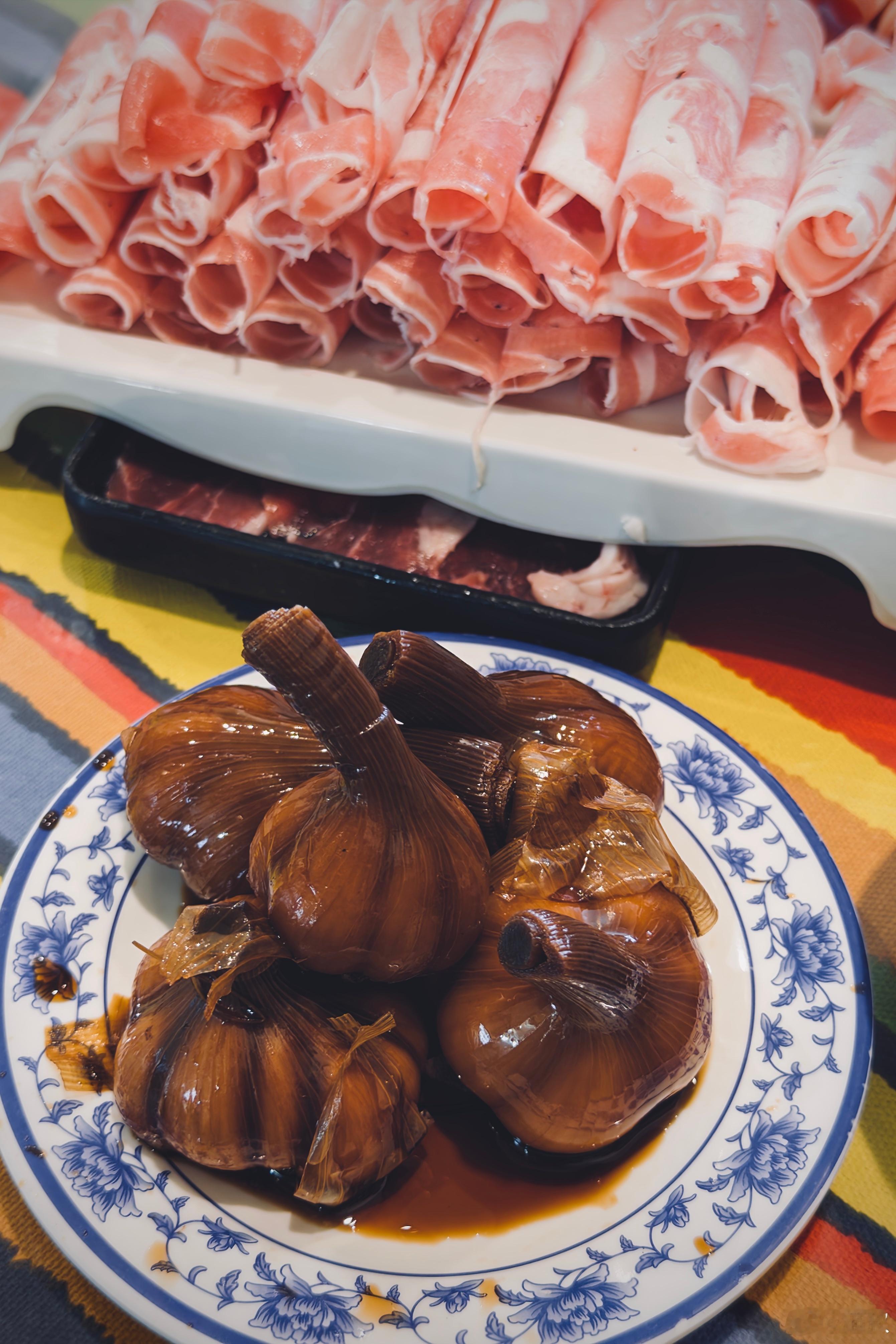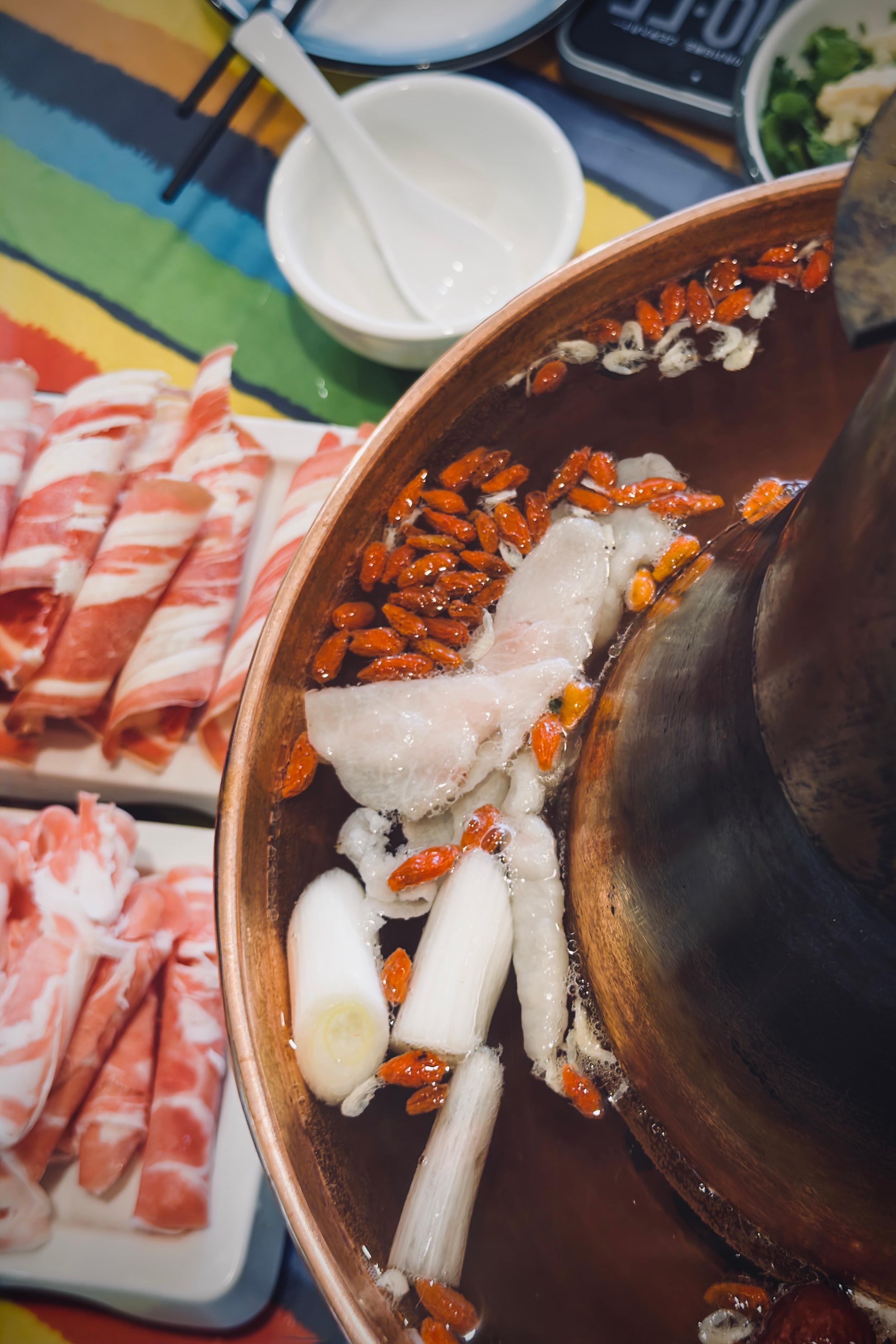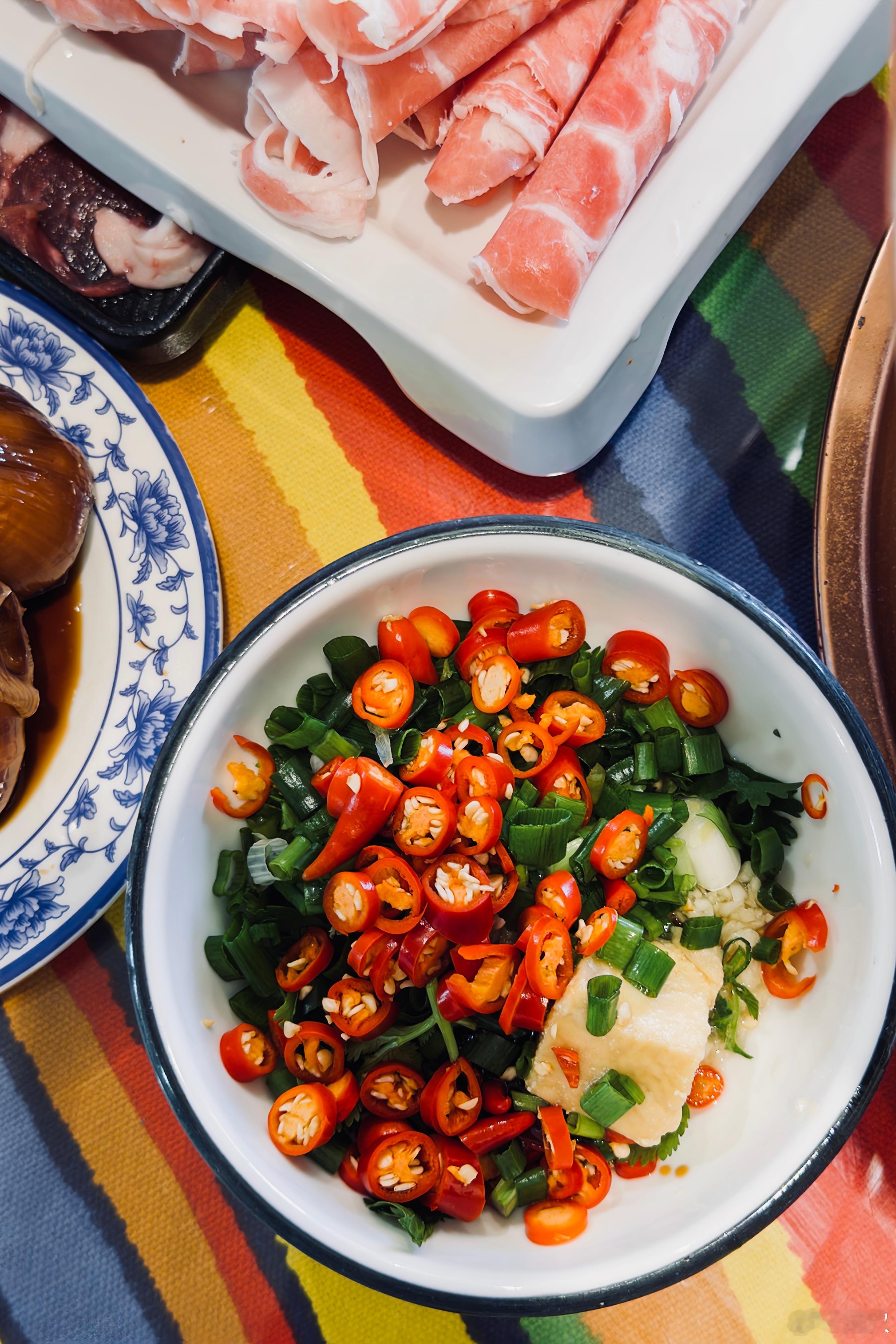 今日幸福感是铜锅涮羊肉给的。香菜葱花打底、腐乳增香、小米辣提劲,不愧是川味版蘸碟的灵魂组合。