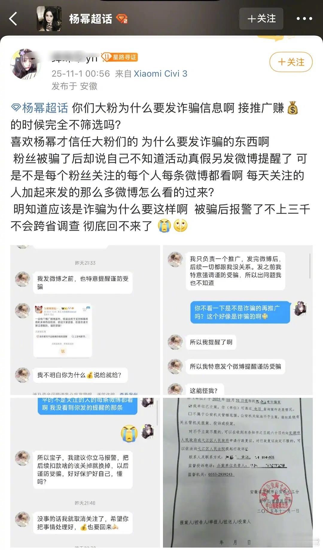 杨幂红V大粉接诈骗广,害多个小粉丝被骗,有说被骗了4万块的……