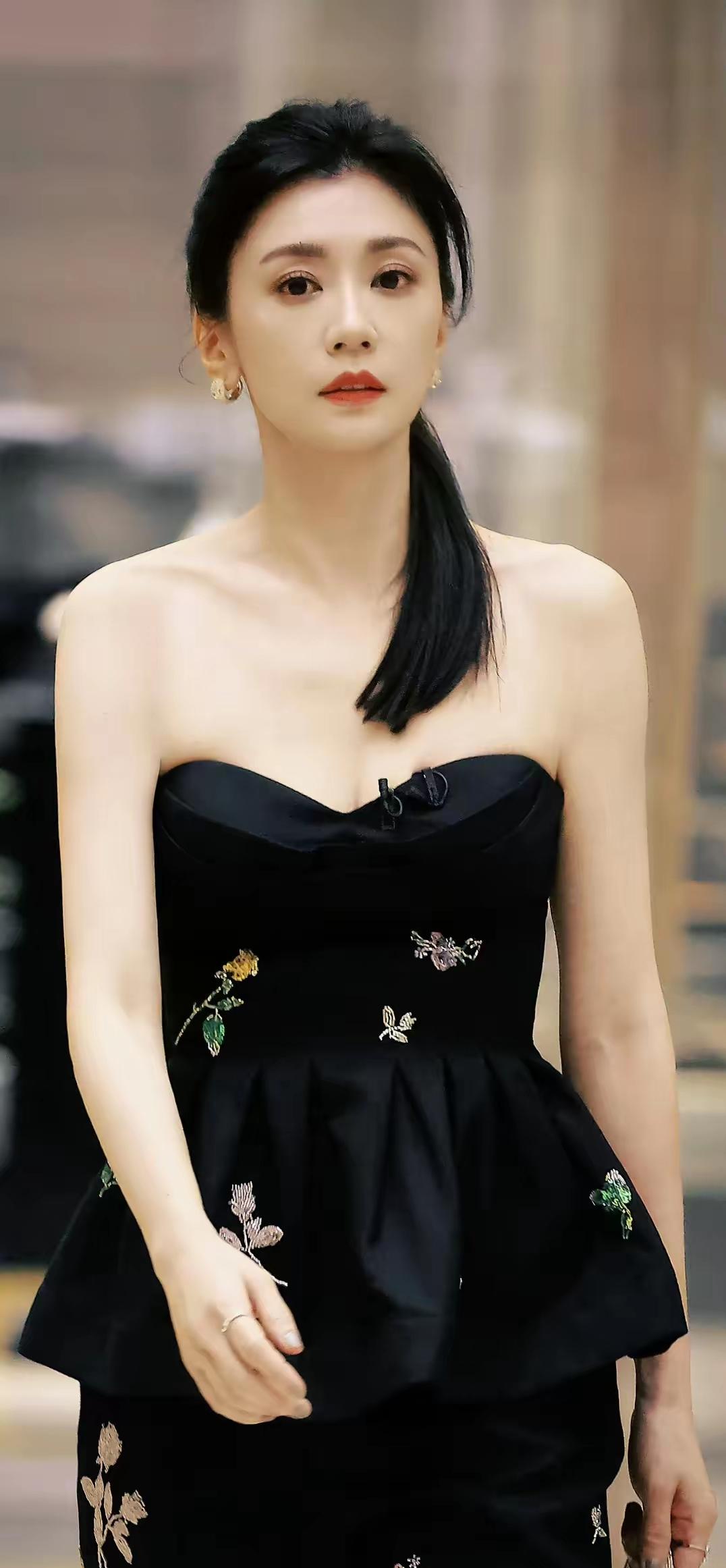 黑裙映花影,美人似画来。贾静雯