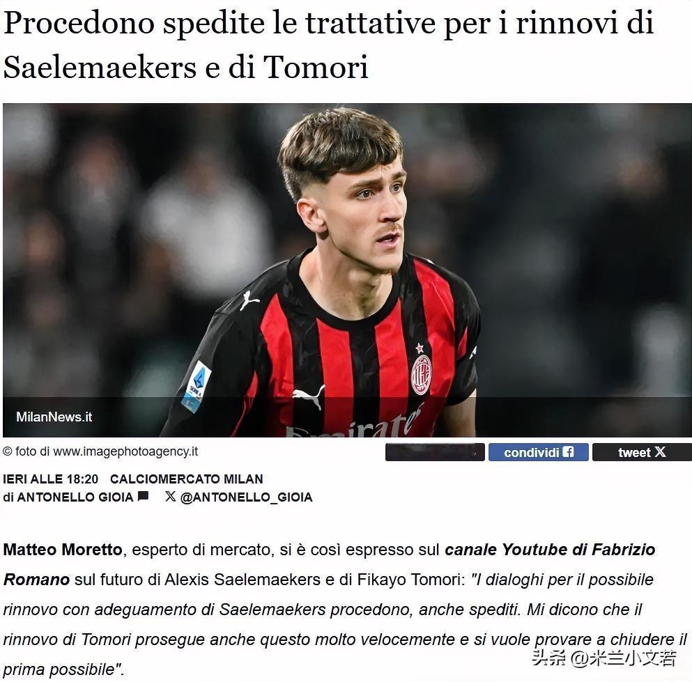 续约谈判依然在进行中!米兰比利时中场球员萨勒马克尔斯与英格兰后卫球员托莫里续约谈