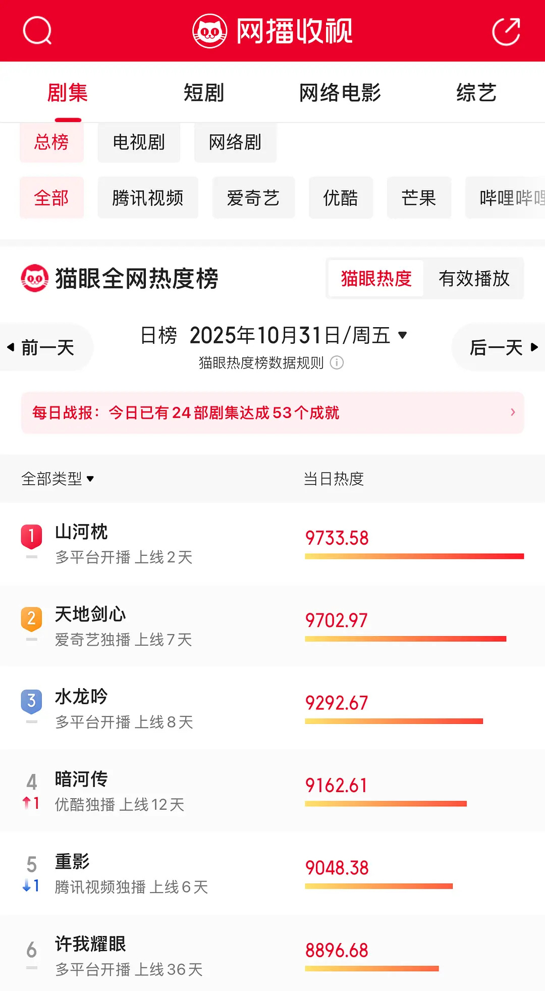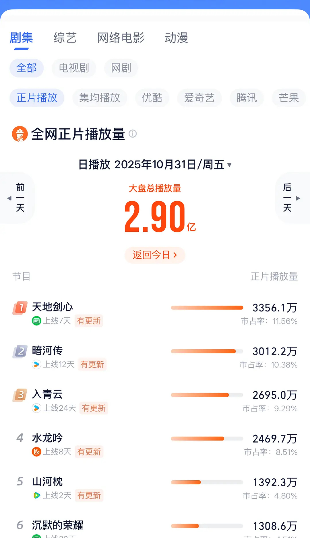 怎么都这么扑啊!就没有一部能热热场子。占比上20么?天地剑心12% 暗河传10.8% 水龙吟10.6% 入青云 10.2%
