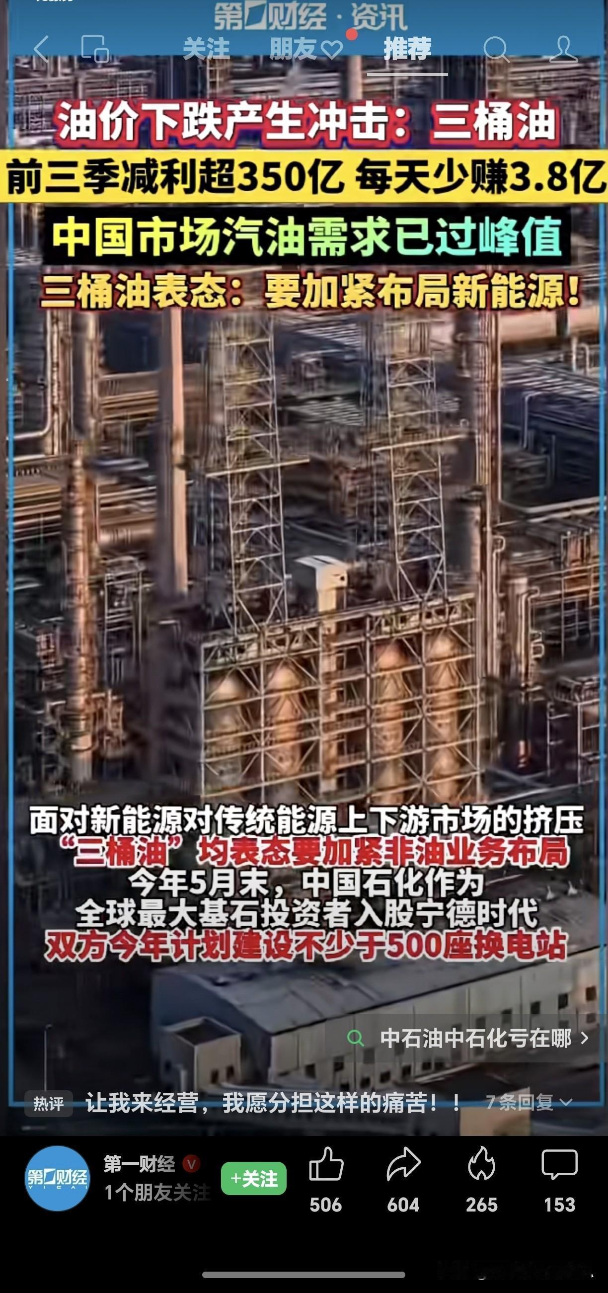 三桶油年年亏损,让我来经营,我愿分担这样的痛苦!!三桶油 油价 油价涨与跌 三桶油实力对比 油价最新消息 三桶油财报