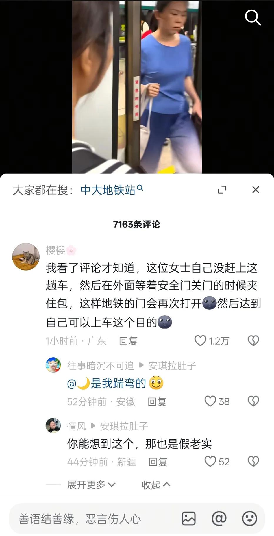 看了半天这个视频,一开始看不懂,地铁门外边,门都关了,怎么还站着一位女人,旁边竟然还有人扯她包是干什么,然后她还不顾旁边扯她包的人,一会儿门开了,她立马,理都不理旁边的人,就直接上车了。 我一开始还以为她脾气怎么这么好,旁边那个扯她包的人是谁?直到看了评论区,我才知道,噢,原来旁边扯她包的人可能就是地铁的工作人员,是这位带包的女士没赶上车?硬上?这也行?大家怎么看?