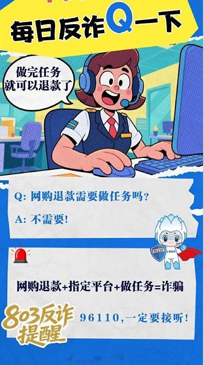 反诈提醒:网购退款+指定平台+做任务=诈骗via:刑警803上海 法姐讲法