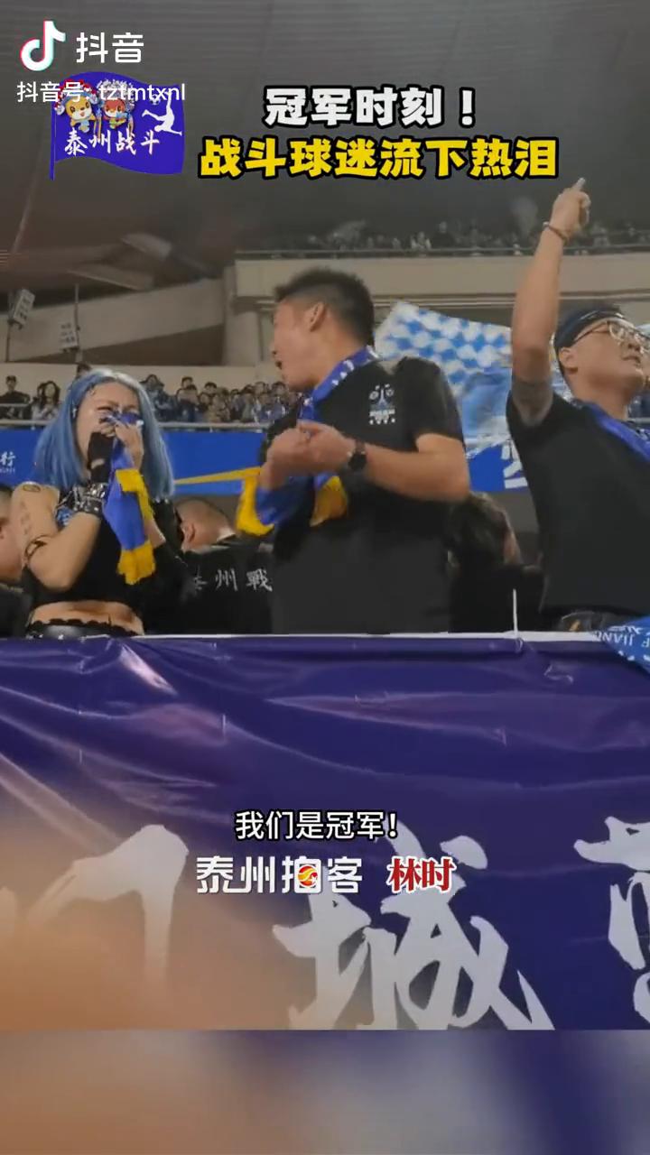 泰州战斗,我们是冠军! 泰州拍客林时。 冠军时刻,战斗球迷流下热泪。 苏超赛后泰州文旅狂发抖音。