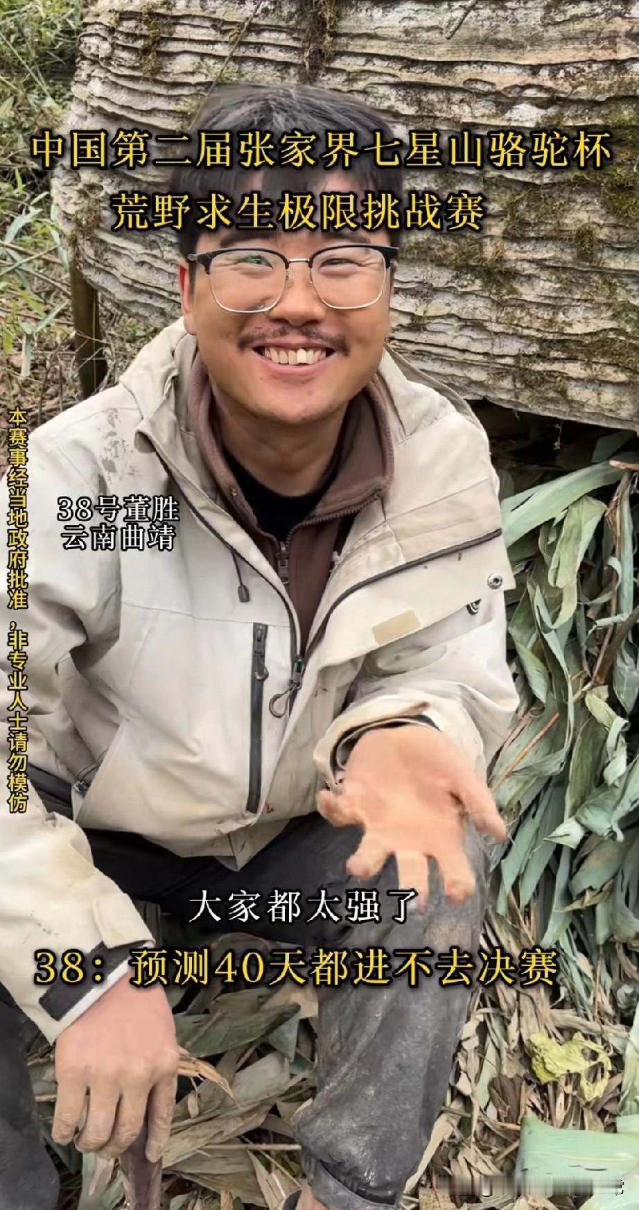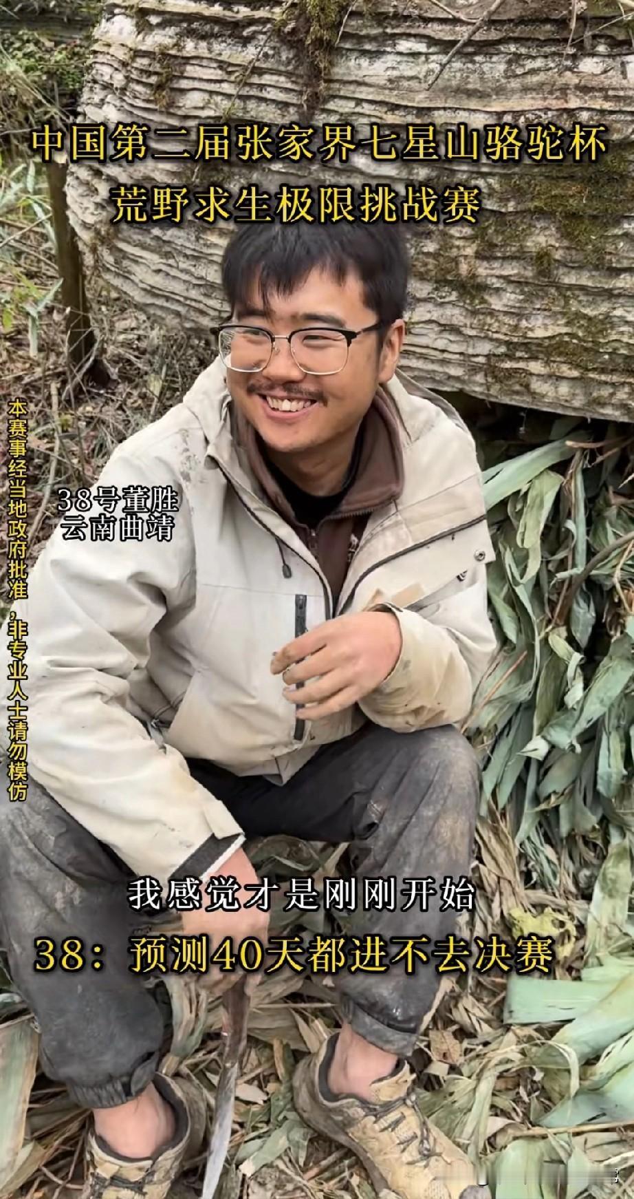 荒野求生赛太疯了!半年不玩手机,冠军狂揽20万! 张家界七星山这场荒野求生赛绝了!选手们扔了手机,在深山里硬刚,半年熬下来冠军能拿20万! 就说云南曲靖的38号董胜,一身泥污还乐呵着,直言“选手强得可怕,40天都进不了决赛”。你想想,没手机、没外援,在深山里找吃的、找住处,跟野兽蚊虫斗智斗勇,这哪是比赛,简直是真人版“荒野狼人杀”! 现在人离了手机就慌,可这群人硬扛半年,就为了20万奖金。有人说这是勇敢者游戏,有人骂是拿命换钱。你觉得为了20万,把自己扔深山半年值不值?