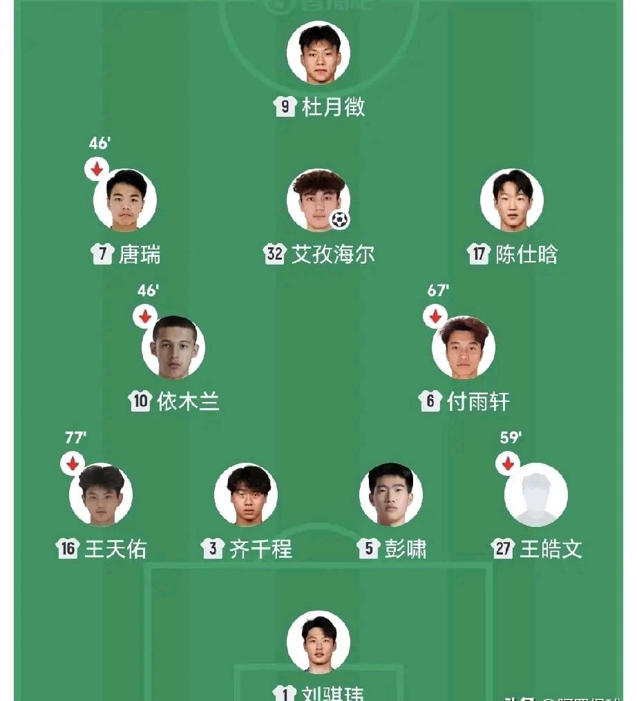 伊木兰首发出战,彭啸打进点球,杜月徵9号单箭头,韩鹏带领的山东U20队2:1逆转新疆U20队,取得全运会决赛阶段开门红。 本场比赛,山东U20队,刘骐玮首发门将,彭啸、齐千程中后卫,依木兰时隔多日首发,海外回归的杜月徵锋线。 不过依木兰半场发挥并不多好,下半场被陈泽仕换下,好在比赛还是赢了。 山东U20夺冠的难度,依旧很大!