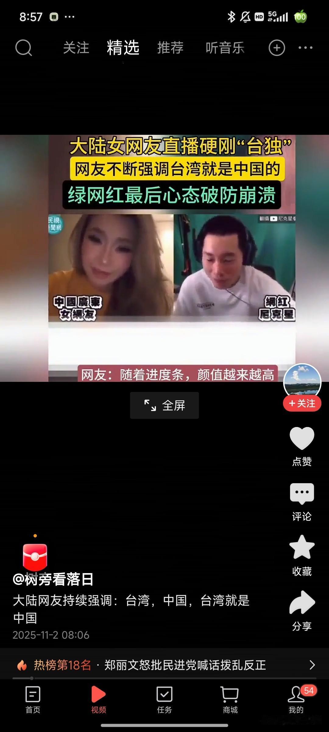 大陆女网友硬刚“台独”绿网红,不断强调一句话“台湾就是中国的”,把对方怼到心态崩了! 这种底气不是喊口号,是咱中国人骨子里对祖国领土的坚定。有些人总想搞分裂,却忘了台湾从来都是中国不可分割的一部分。 看到绿网红那破防的样子,咱就一个字:爽!各位觉得这种硬气对峙该不该多来几场?欢迎在评论区聊聊。