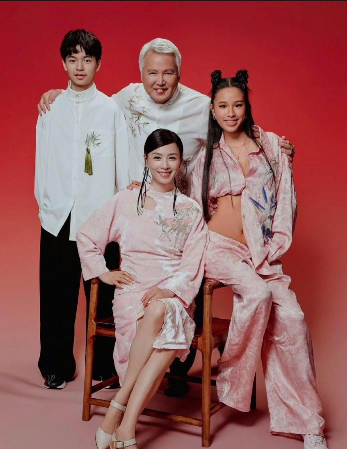 张庭晒全家福,女儿新中式穿搭尴尬,与他人格格不入