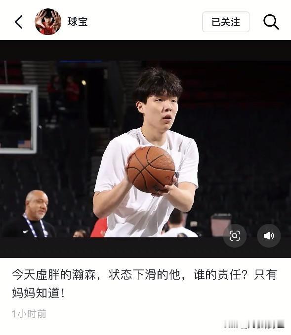 杨瀚森被开拓者下放到发展联盟训练,杨妈妈在社媒发声:今天虚胖的瀚森,状态下滑的他,谁的责任?只有妈妈知道! 杨瀚森的妈妈这话似乎话中有话在责怪某人连累杨瀚森,到底说的谁呢?在我看来,应该不是指刘维伟和开拓者的责任,很有可能杨妈妈所指的这个谁,如果不是说杨瀚森他自己,那就是他的女朋友,毕竟杨瀚森才20岁出头,篮球职业生涯的起步阶段就牵扯太多的儿女情长,身边无时无刻都带着女朋友,杨瀚森很难保持自律!