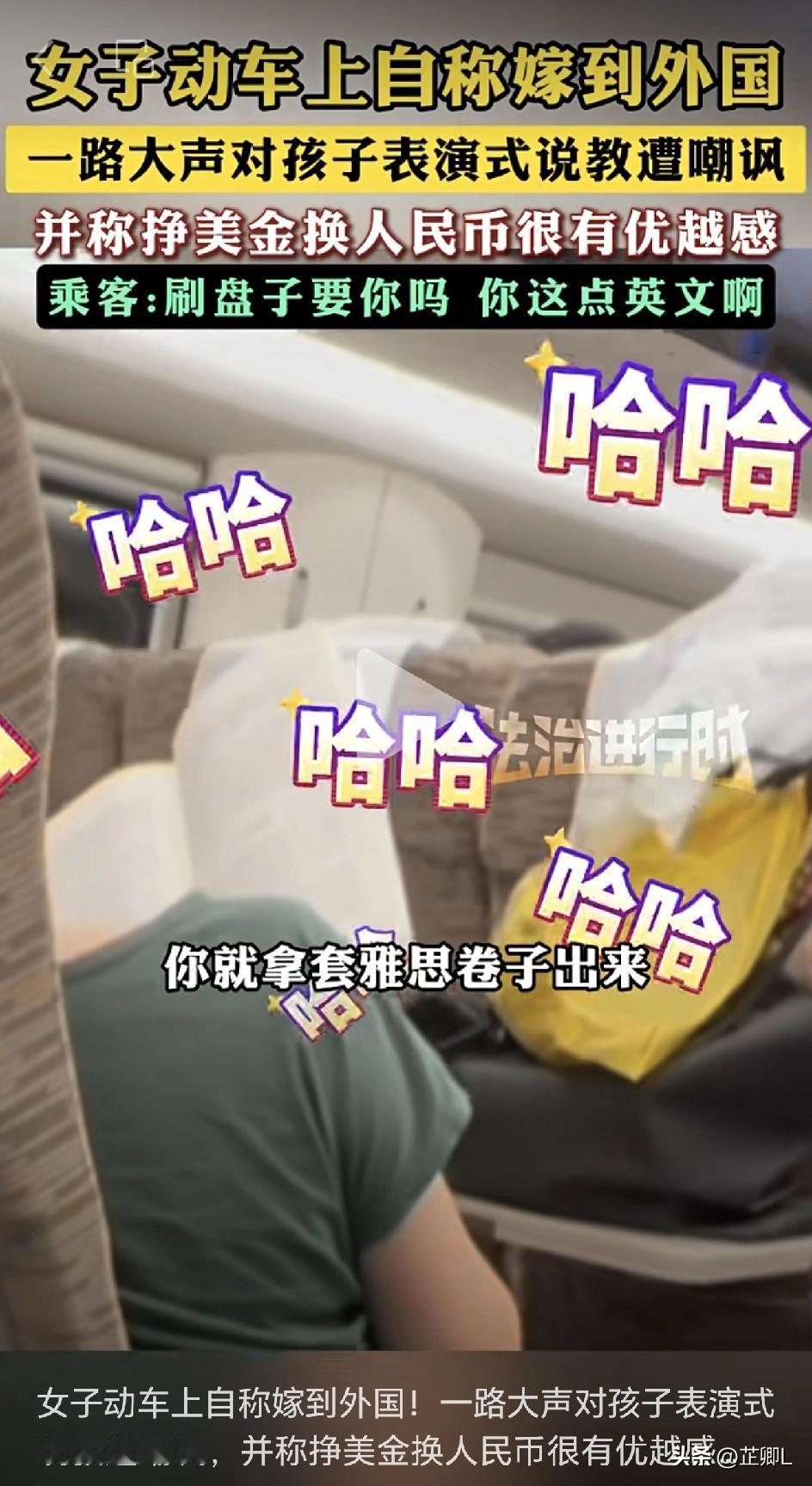当“崇洋媚外”遇上“雅思嘲讽”:一场没有赢家的公共空间博弈!女子在高铁车厢高调教子,被群嘲,网友:自卑到家了! 近日,一段拍摄于高铁车厢的视频在网上流传。 一女子在车上一路大声对孩子表演式说教,一副崇洋媚外的做派,惹起了车厢其他乘客的不满。 有乘客说: “你这是回国享受生活来了吧?” “你在那边干啥呢?刷盘子要你吗?就这点英文。” “要不然,你就拿套雅思卷子出来,咱们一块做一做,好不好?” “四级都没过吧,在那边?” 惹来了满车厢乘客的哄笑。 没想到,女子面不改色地回应,“我就没有,读书就是不好,但嫁的好!” 面对乘客质疑自己哪来的优越感时,女子骄傲地说自己赚美金换人民币,就是十足的优越感。 哎呀,这别致的优越感,真是让人不知道说啥好了。 评论区的网友们,也是欢乐的很: “嫁得好坐二等座,委屈她了!” “我也碰过这种,啥时候不能教孩子,非得在安静的车上大声显摆。” “很多这表演式妈!” “意义在哪里呢?比谁在公共场所声音吵?” “说实话,都是显眼包!” “就这样当着小孩的面说人家妈妈,小孩心里也不好受吧。” “其实就是无限的自卑感,生怕别人瞧不起。” “嫁给外国人就是嫁的好?这什么世界观??” “越是缺啥就越炫耀啥,是从心底里自卑来的,应该可怜这种人,生活并不顺意。” “能听懂还能怼回去的绝对有文化的人,换我只能爆粗口了。” “足够大的自卑,才有足够大的优越感,这是人性。” 女子表现出来的崇洋媚外确实让人非常讨厌,但也不得不说一句怼她的女子也不是太冷静。 世界之大无奇不有,有些人天生就觉着外国的月亮圆,外国的空气就是清新脱俗,那就让她去。 就像网友说的,这种在公众场合公开炫耀的人,并不是说她有多幸福,而是因为她炫耀的正是她缺的,炫耀是源于她骨子里的自卑,迫切想获得周围人的认同。 对这样的人,最好的反击方式就是不理她,让她一个人唱独角戏。越有人回应她,她就越觉着自己炫耀的对了,甚至会认为是别人嫉妒她,炫耀之心更盛。 所以,不理她好了,就让她在自己美好的幻想中沉沦,不用叫醒她。人教人教不会,事教人一次就能成功。 而出言嘲讽她的女子,虽然情绪上都可以理解,甚至认同。但其本质上,却是落入了与对方“比优越”的陷阱,使得车厢变成了一个更大的“显摆”现场,并未能真正驳倒其核心的扭曲价值观。 在这场闹剧当中,最无辜的受害者是那个孩子。他同时目睹了母亲的虚荣和陌生人的群嘲,心理上会受到双重冲击。 所以,在公共场合遇到类似的“显眼包”,最智慧也最有力的回应是 “不回应” 。 我们无需用他人的虚荣来折磨自己的情绪,也不必陷入无谓的争辩。保持冷静与沉默,既维护了自身的体面,也让表演者失去了舞台。 让她在自己的认知闭环里自得其乐,才是对这个故事最恰当的结局。 这就叫尊重他人命运,放下助人情节! 信息来源于法治进行时,侵联删! 带定位晒今日生活 我的今日状态:😁轻松愉快 我这里的天气:☀️晴天