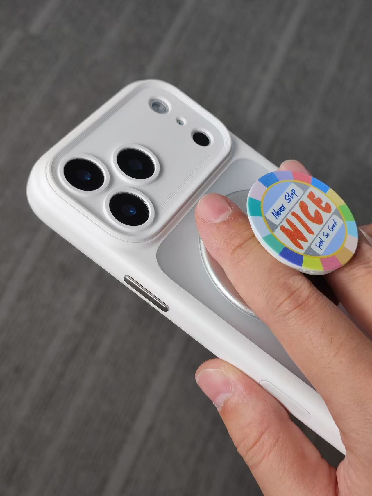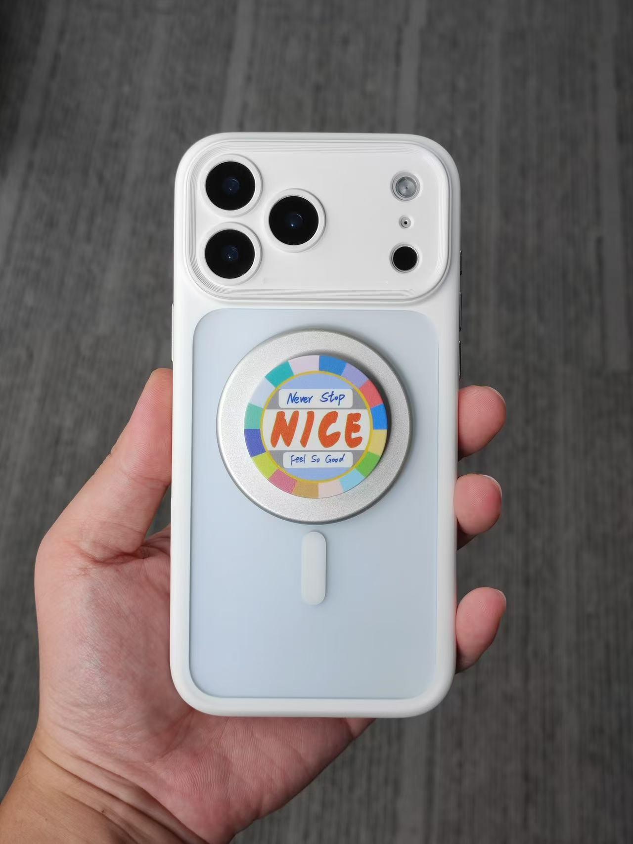 今年 iPhone17ProMax 比去年又重了几克,再次安利磁吸气囊给大伙,用来拯救小拇指[嘻嘻]这配件磁力吸附稳当,底部镂空设计后,又减轻了不少,更适合日常使用。铝合金一体平整底座,质感也是相当到位。