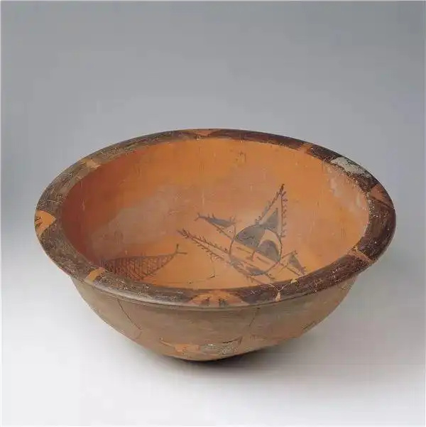 陶盆内壁用黑彩勾勒出人面鱼纹