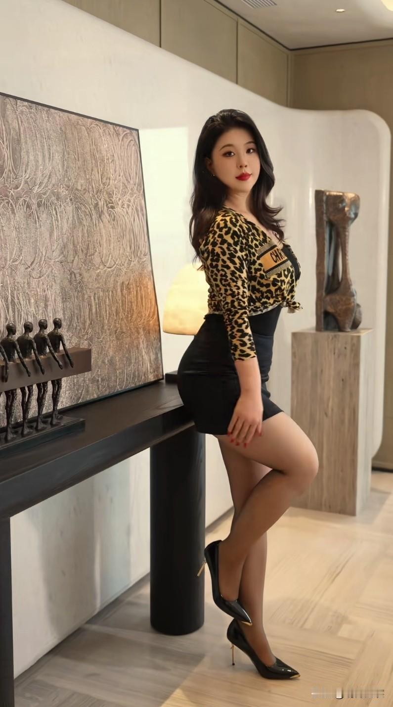 精致家庭美妇,豹纹外套搭配黑色短裙,柔情满满!💃🏻✨
