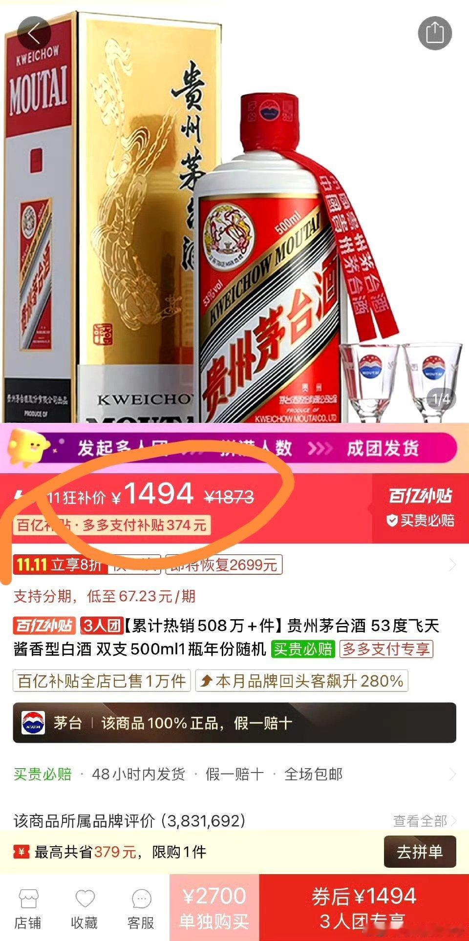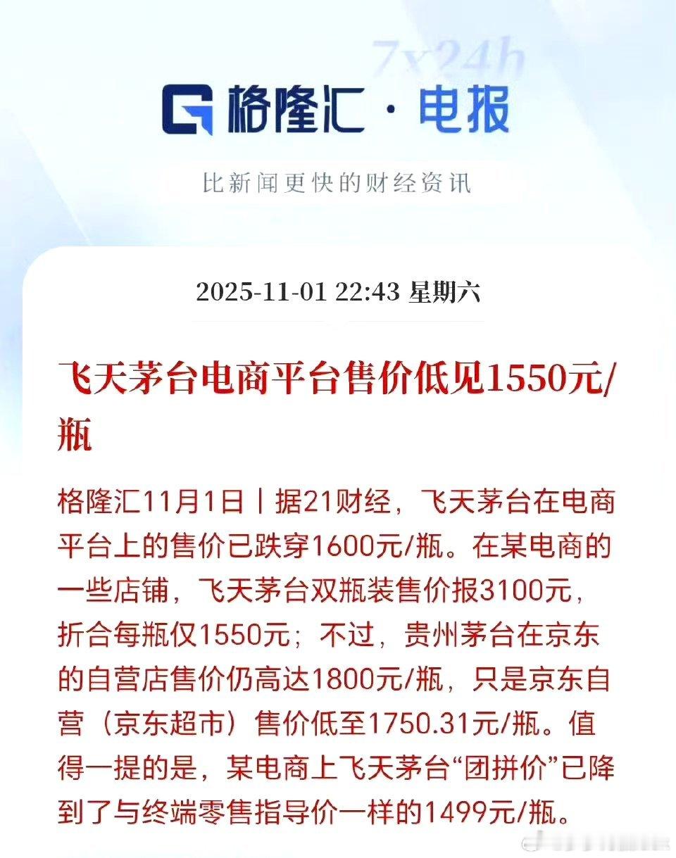 你敢相信吗?53℃飞天茅台零售价跌破1500了。