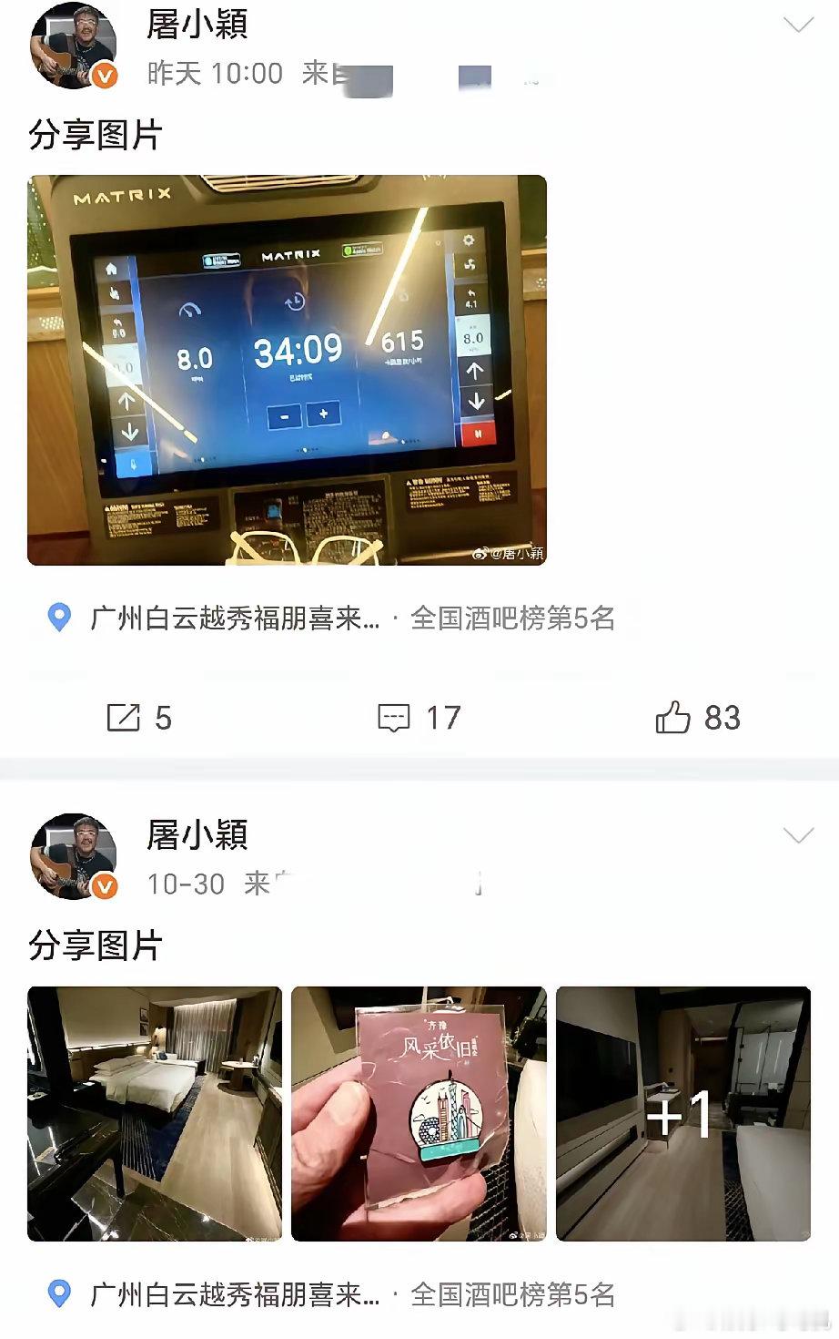 ​回看屠颖的微博朋友圈,全部都是有关运动和美食的,看来他平时特别喜欢吃甜品,还有一些油腻的东西。