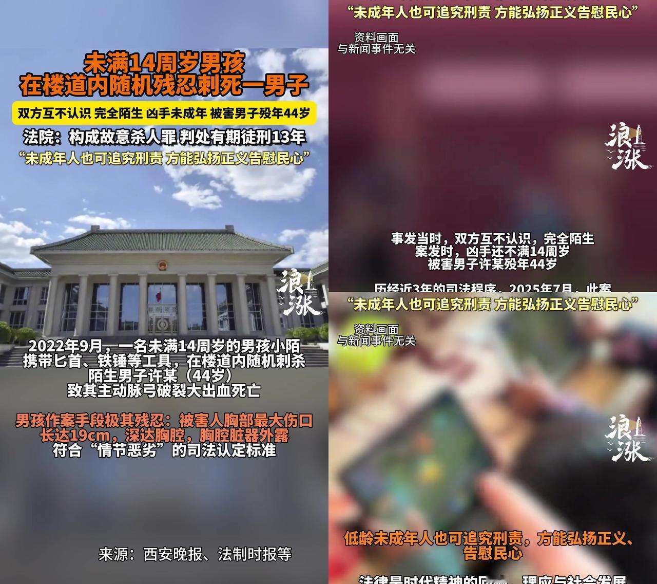 这判决看完,我后背直发凉! 14岁男孩带匕首、铁锤,随机刺死44岁陌生男人,伤口19cm,深到胸腔,脏器都露出来了!就因为情节恶劣,终于判了13年。 有人说13年太轻,出来才27,根本没给受害者家人交代;也有人说孩子还小,该留改过的机会。 可我想不通,那个被刺死的男人招谁惹谁了?深夜回家,突然被陌生孩子捅死,他是父母的儿子、老婆的丈夫、孩子的爸爸啊!他的命就这么被轻易夺走,家人的痛要怎么补? 法律要弘扬正义,可受害者的正义在哪? 大家觉得这判决够吗?