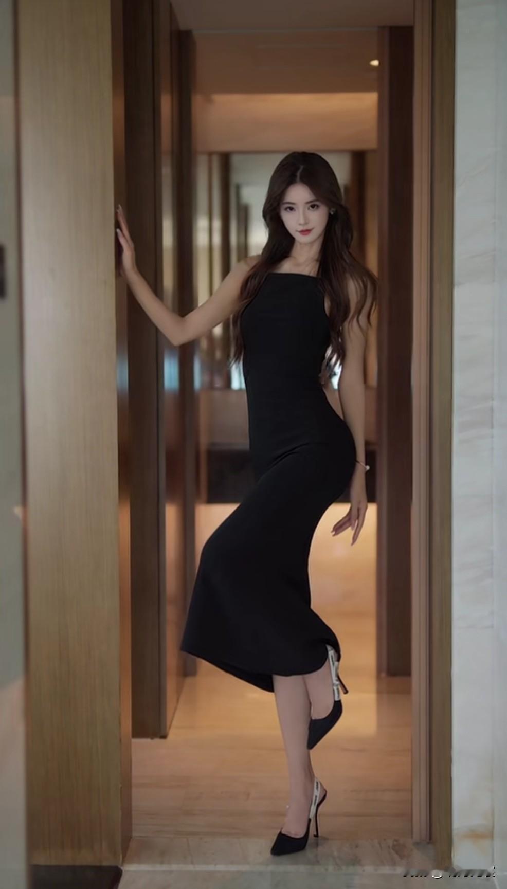 黑裙搭配黑丝,婀娜妩媚的身姿,谁看谁不迷糊