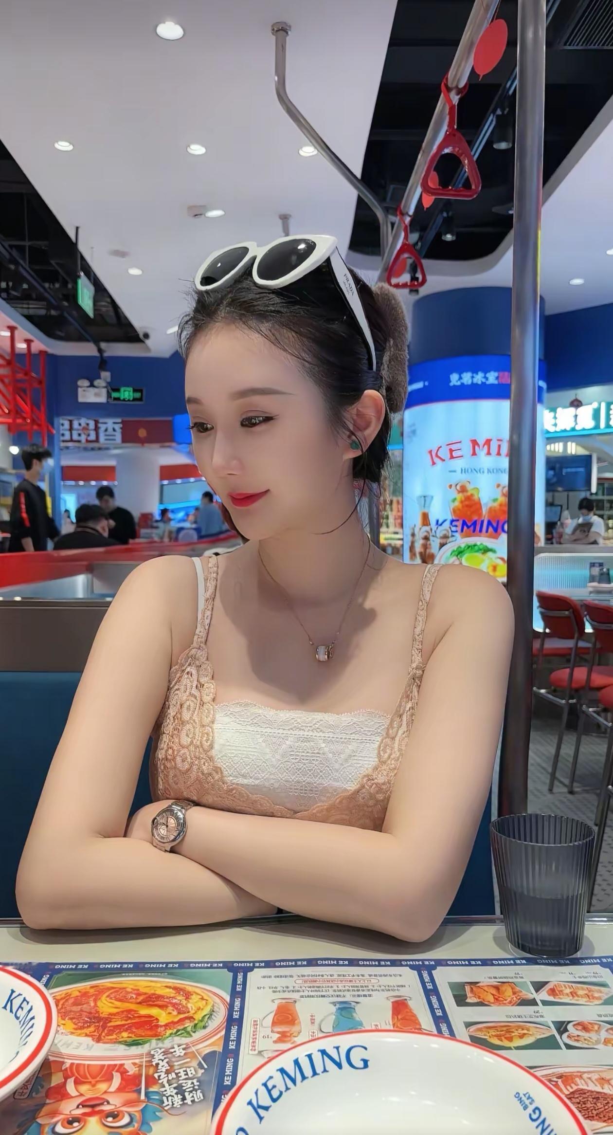 慵懒午后,窗边小憩,格子衬衫与红唇的完美搭配。