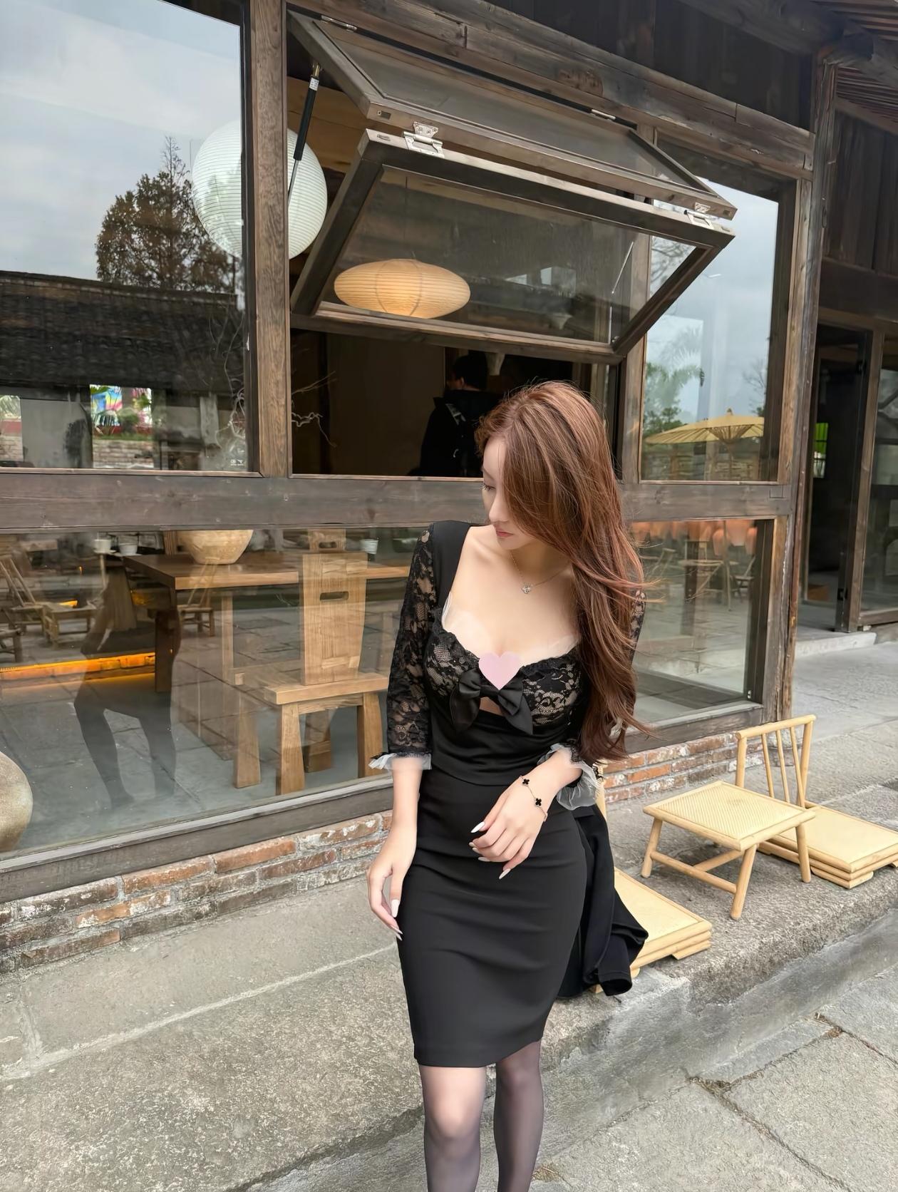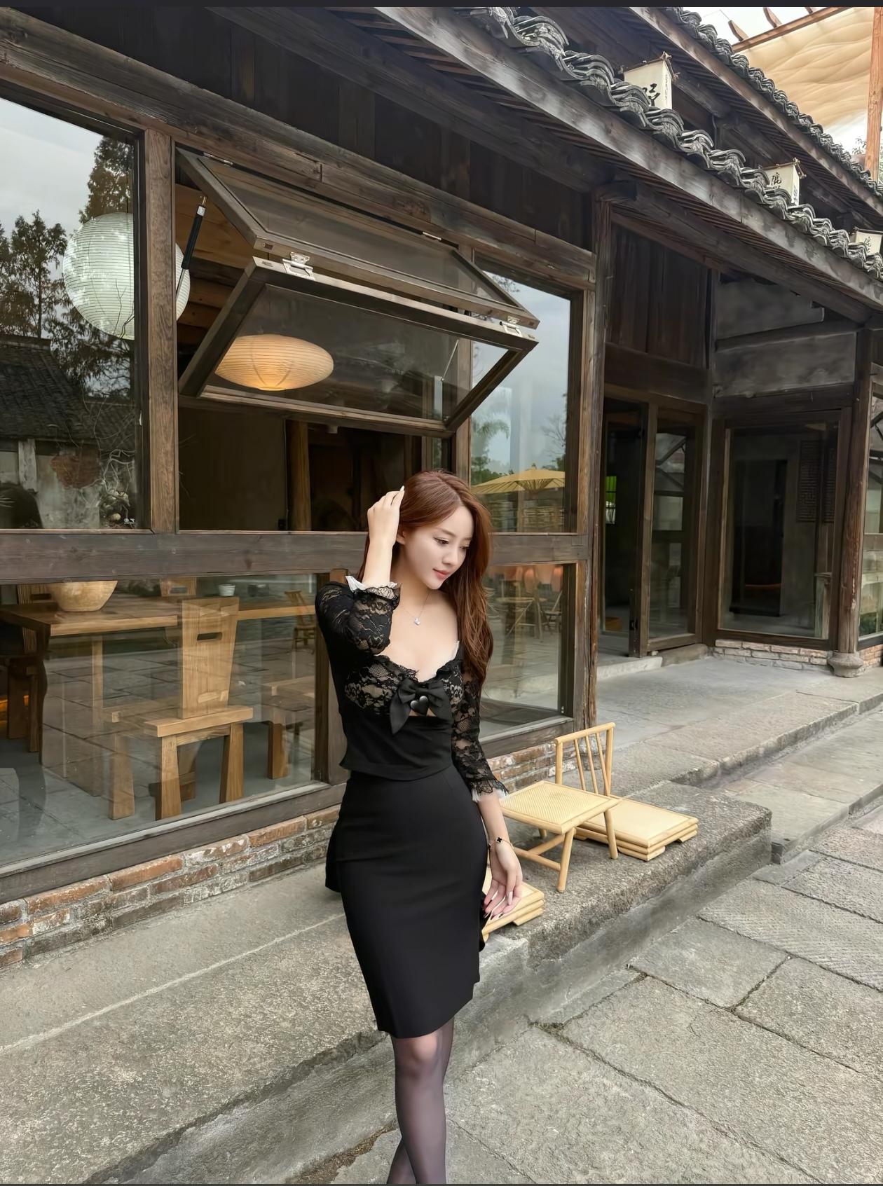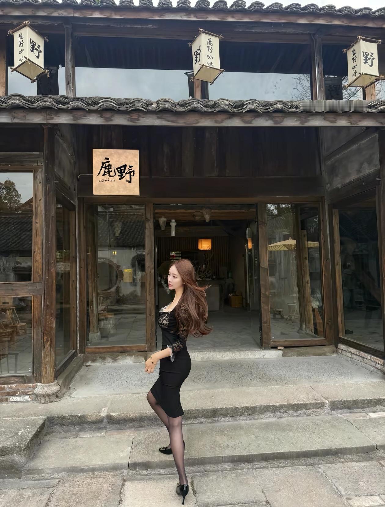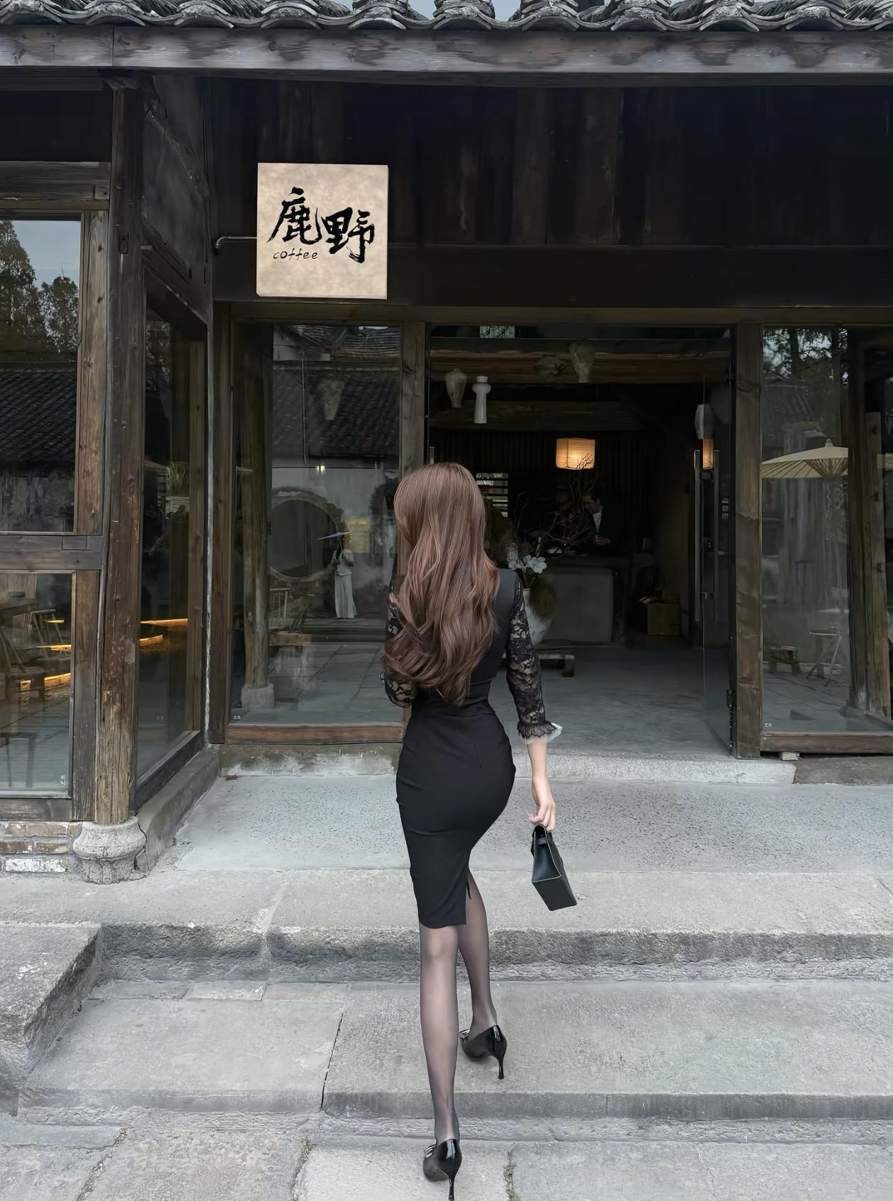 黑裙搭配黑丝,婀娜妩媚的身姿,谁看谁不迷糊