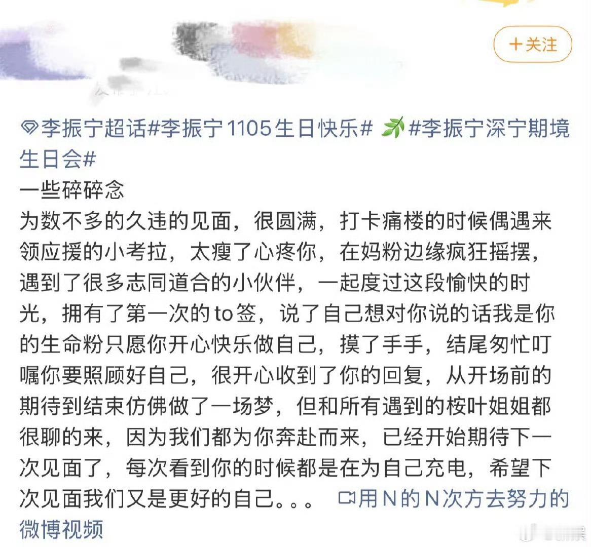 李振宁这次换我走向你们 新歌、手写信、伴手礼……李振宁把六年的感谢打包成生日惊喜,一句“陪我去更远的未来”让人瞬间破防。