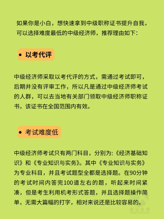 评上职称对职业发展能提供不少帮助,但传统的评审方式比较复杂,而且条件严苛。对此,普通人可以尝试走“考证”这条捷径。 . 有些证书是可以视为中级职称的,很值得报考!比如中级经济师、会计师、软考等等。 .