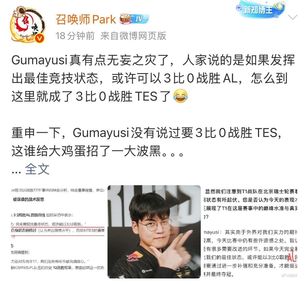 Gumayusi在采访中表示:如果达到最佳状态或许可以3:0战胜AL!