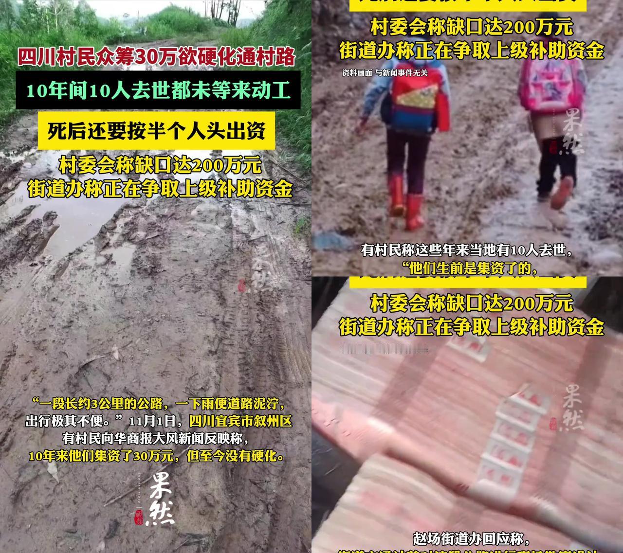 2013年冬天,李婆婆把卖年猪的2000块塞给村干部,说等路修好了,我要坐孙子的小车去赶场;2023年冬天,她的棺材是用木板抬着出村的,泥路滑得抬棺的人摔了两跤。 四川青龙村的3公里泥路,10年前村民凑了30万要硬化,结果路没修,先送走了10个出钱的老人。 张大爷临终前还问儿子:“我出的钱能不能退给娃?”因为去世的人要按半个人头出资,这钱揣进兜里就没拿出来过。 30万存街道办账户10年没动,有人调侃利息都够买几吨水泥了,可泥路还是泥路,面包车翻了一次又一次。 更让人想不通的是,3公里要300万?隔壁村去年修2公里才花80万,这是要铺黄金路? 那些老人凑的,是以后能走平路的盼头啊!李婆婆没等到孙子的小车,张大爷没等到退钱,10年的盼头,全摔在泥坑里了。 你身边有这种等了一辈子没等到的民生遗憾吗?
