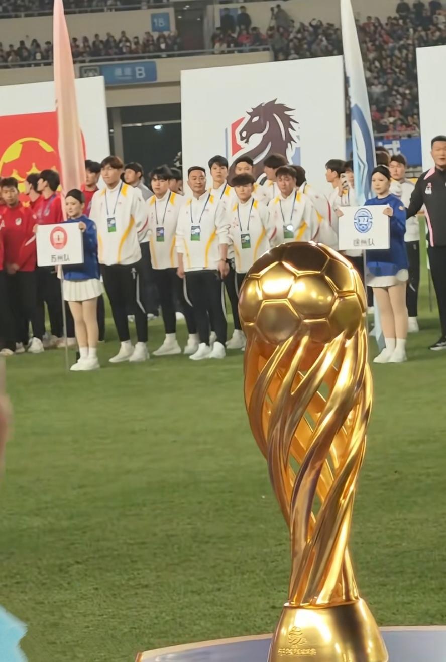 苏州队小将寇程眼睛盯着苏超奖杯看呀! 他之前罚丢点球,导致没拿下比赛,也是点球的受害者呀。 他才18岁,是一个怀着梦想的年纪,很想替苏州拿下苏超冠军吧! 明年跟苏州东吴好好商量,多借点球员过来,让苏南真正的大佬也拿次冠军![偷笑]
