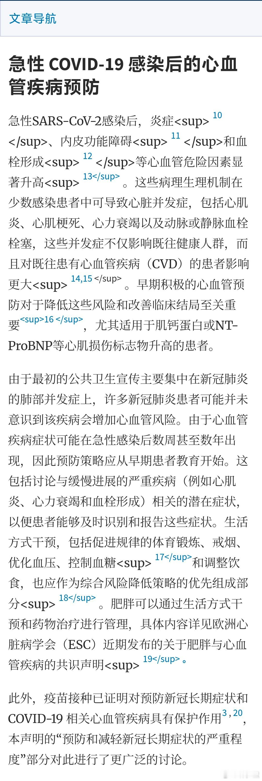 新冠后的心血管疾病症状,可能在急性感染后数周,甚至数年出现,因此预防策略应从早期患者教育开始。