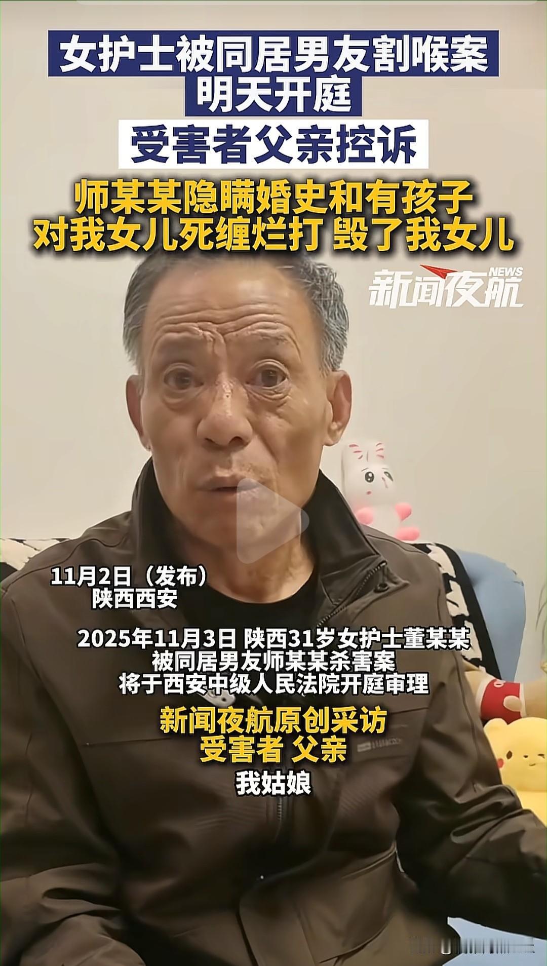 害你的人往往是与你亲近的人。陕西31岁女护士被同居男友割喉,男友隐瞒已婚育,媒人竟是女子堂姐。 2024年6月20日,陕西女护士董某某在车内向同居男友师某某提出分手,两人发生争执,师某某用刀捅至董某某颈部致其死亡。 董某某与师某某分手的原因是,师某隐瞒了己婚并育有两个孩子,怕董某某不同意,一次外出吃饭时,给董某某喝了不明药物,师某某用他的手机拍下了董某某不少裸照,拿裸照威胁董某某不准分手,索要钱财,对董某某各种纠缠,死缠烂打,董某某每月一万余工资被师某某要去了70%花了。 明天,该案将由西安中级人民法院开庭审理,董某某年迈的父亲怒斥道,不要赔偿,只希望判凶手死刑。 这样的一对不在频道的人是怎样交集在一起的呢? 董某某的姐姐哭着说,他们也对师某某不了解,是大伯的女儿,也就是董某某的堂姐介绍的,两人未见面,堂姐就将董某某的微信推给了师某某,从而开始了一场死缠烂打的恋情。 堂姐难道不知道师某某的为人和过往婚史吗?或许她知道,是故意的,大家不都知道吗?女人之间存在嫉妒,自己不如你,但怕看见你比她强。 也或许堂姐不知道师某某的为人和过往,但也说不过去,这人生大事,又是最亲近的人,这种太不负责任的行为,不是害人吗? 如果不是堂姐介绍的,师某某或许没有机会结识到这种下三滥。 堂姐或许还感到无辜,她只是牵线,甄别得靠自己。性格可以隐藏,但对一个人的背景不了解就作介绍就是放任问题存在。 不希望你好的人往往是与你亲近的人,不要将好事寄托在别人身上,还得自己主动出击甄别。希望将凶手绳之以法,以公正的判决安慰亲属,告慰在天之灵!